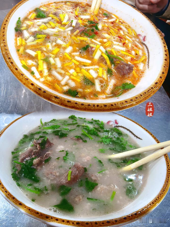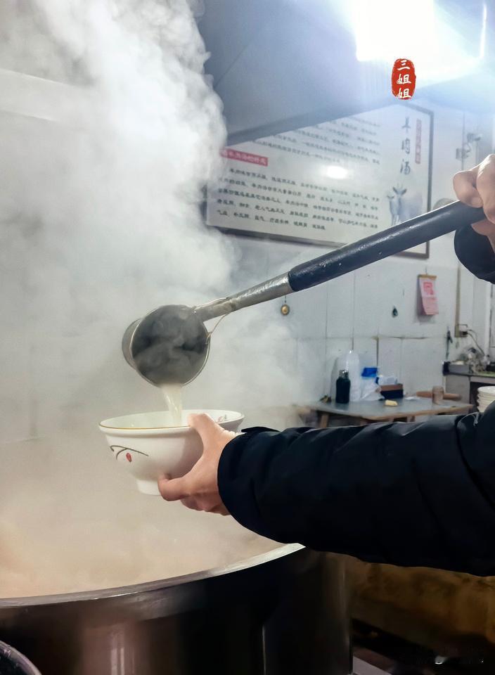 【冬日周口行】宁庄石灰窑羊肉汤,羊肉汤控必冲。 冬天到周口怎能错过这碗羊肉汤,听说在当地,没人不知道这家羊汤店。 可我一走进热气腾腾的店里,有点懵,买肉的、盛汤的、拿饼的,几乎全都是自助服务,汤客们动作娴熟,在偌大的汤锅旁,拿着长把的汤勺,热汤冲热肉,葱花香菜打底,再来一勺蒜黄,一勺滚烫的热汤浇下,顿时香飘四溢。 可我只能求助于店家帮忙盛汤,然后配上芝麻焦香的烧饼,坐着低矮的小桌凳,细细品味周口人的这碗心头好。冬日生活打卡季