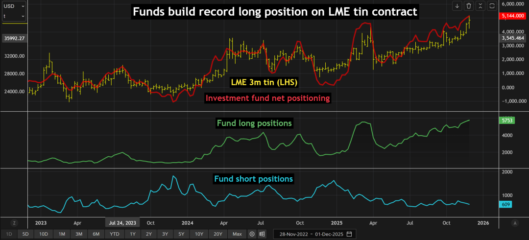 作为伦敦金属交易所核心期货合约中规模最小的品种,锡期货的资金参与度显著提升,进一步加剧了价格波动。