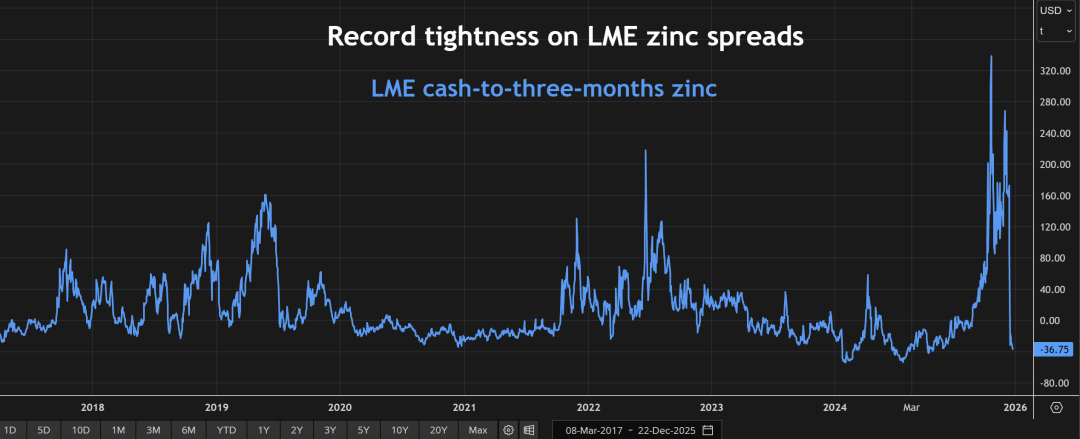 (伦敦金属交易所锌现货与三个月期锌价差)