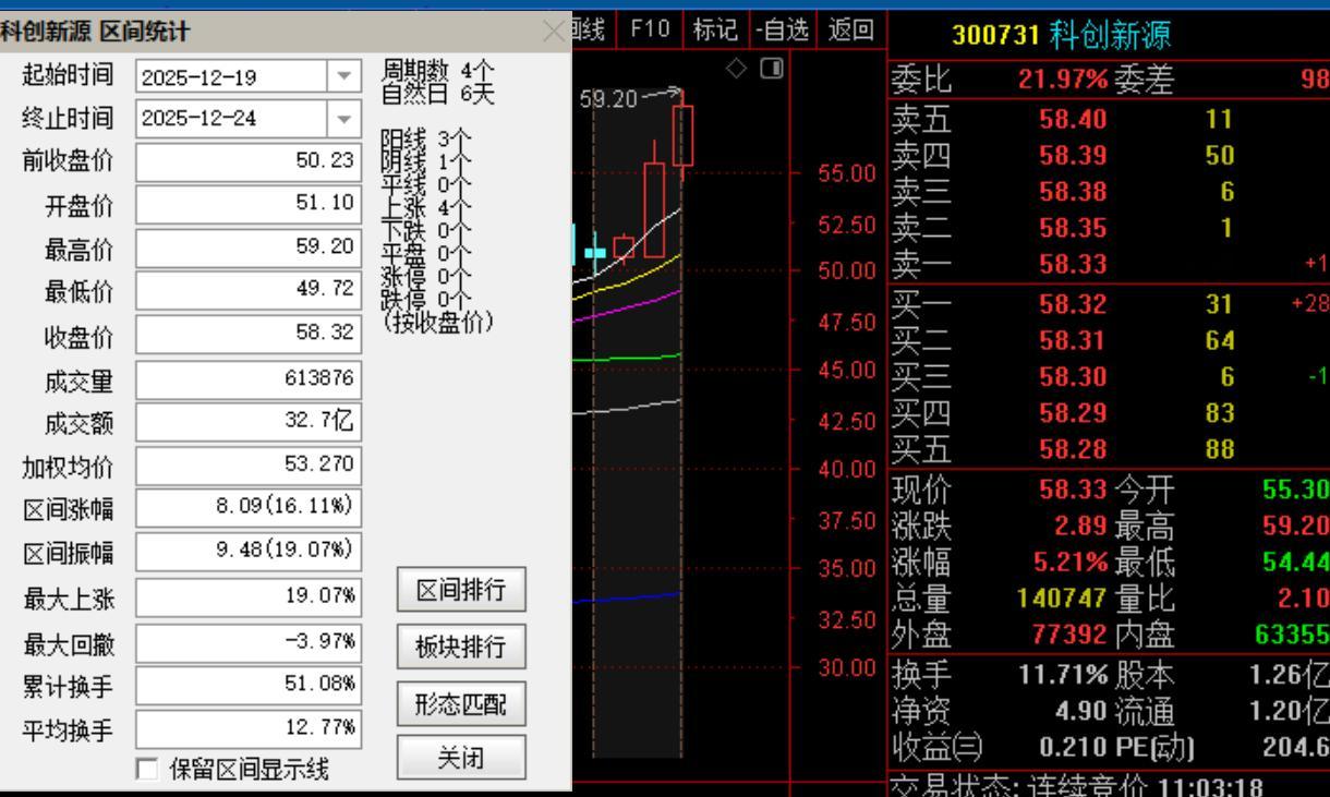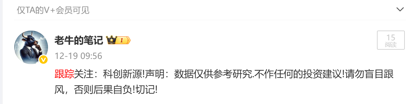 12月19日跟踪关注的:科创新源 已经来到59元了!