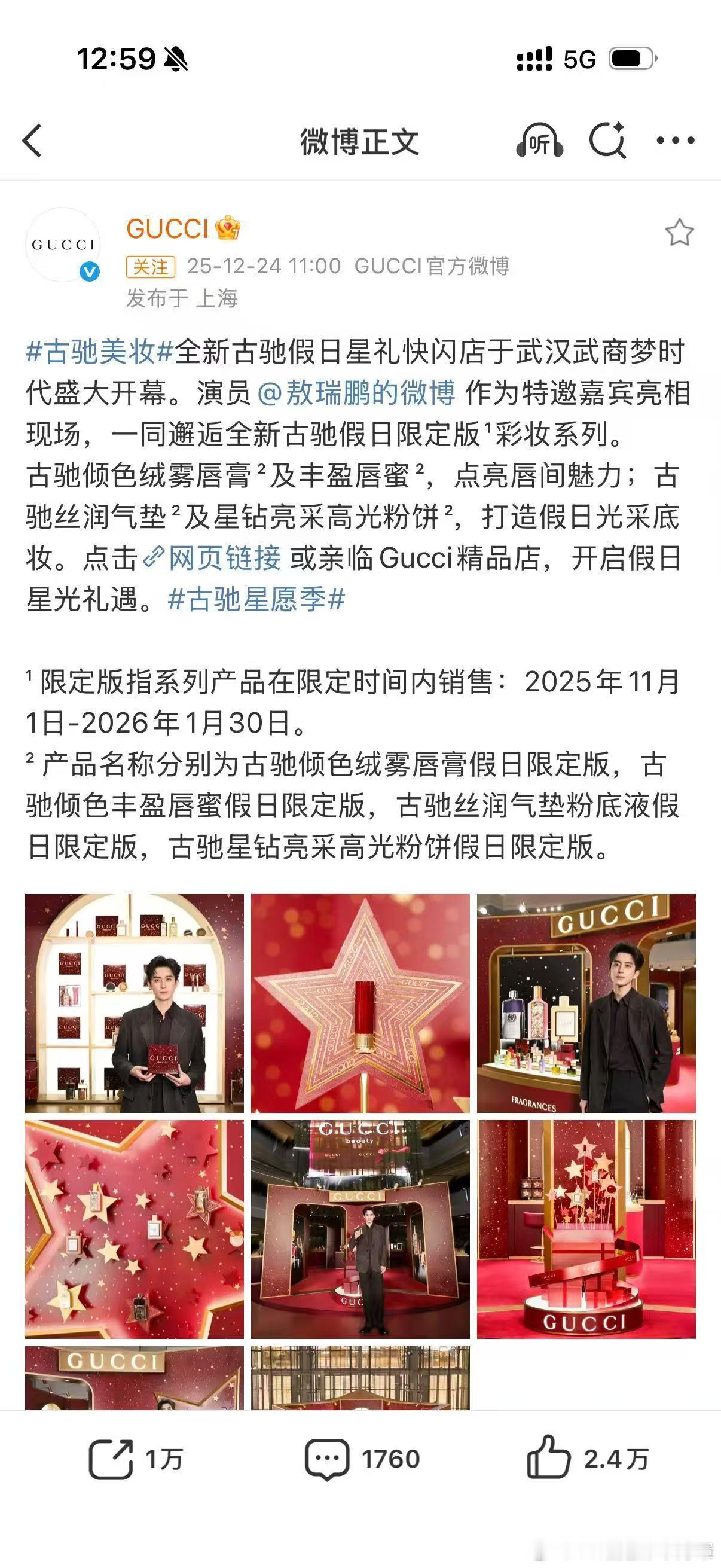 敖子和古家接触又有新进展!敖瑞鹏前阵子参加gucci活动状态不错,还被gucci认领了,昨天直播几款主推也售罄了
