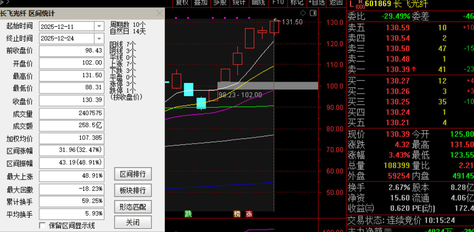 12月11日跟踪关注的 :长飞光纤 股价又创新高了! $上证指数 sh000001$