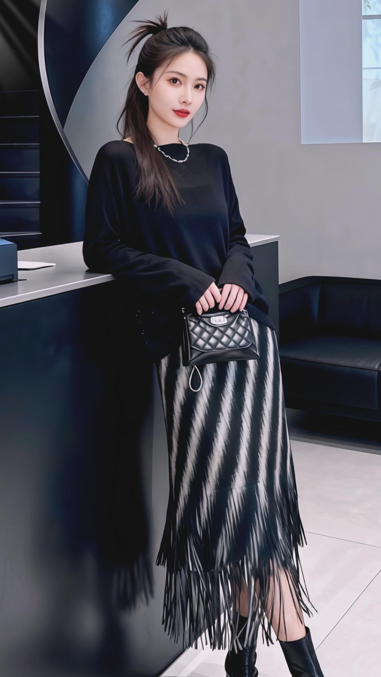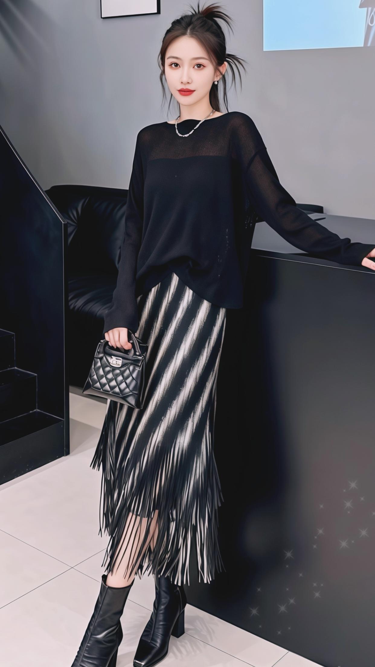 穿搭 黑白系 半身裙 气质 强烈推荐