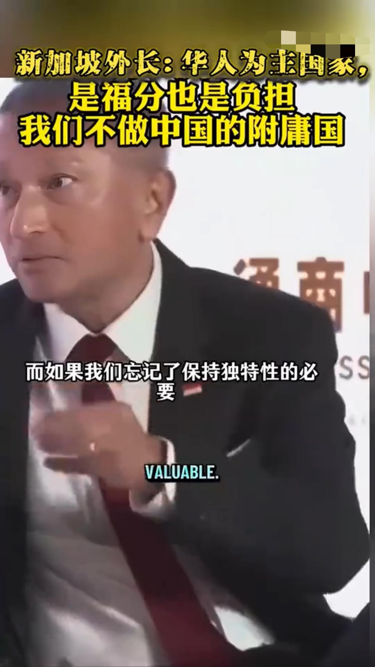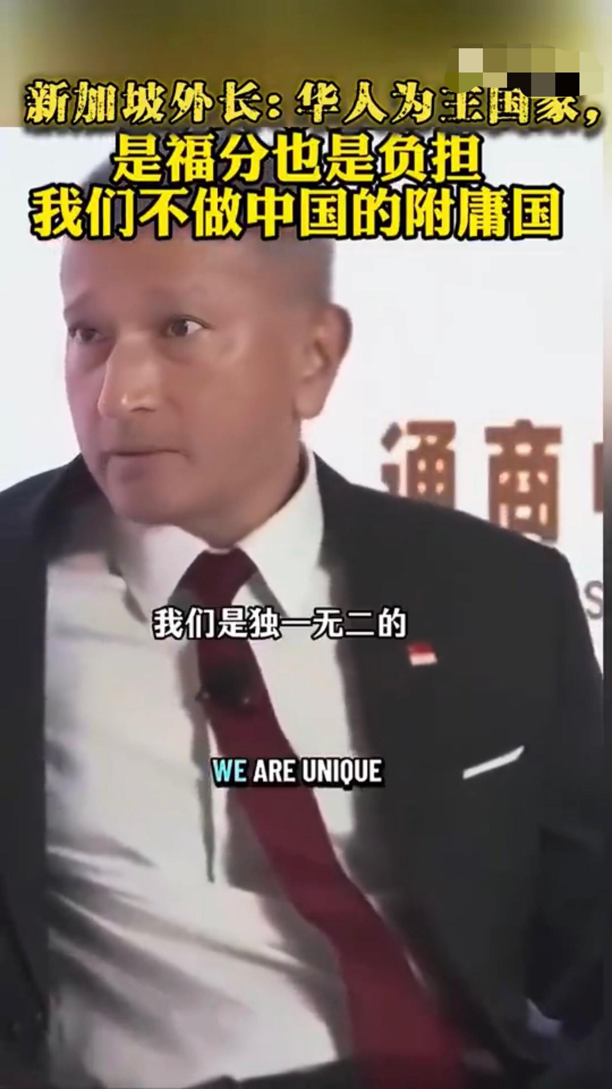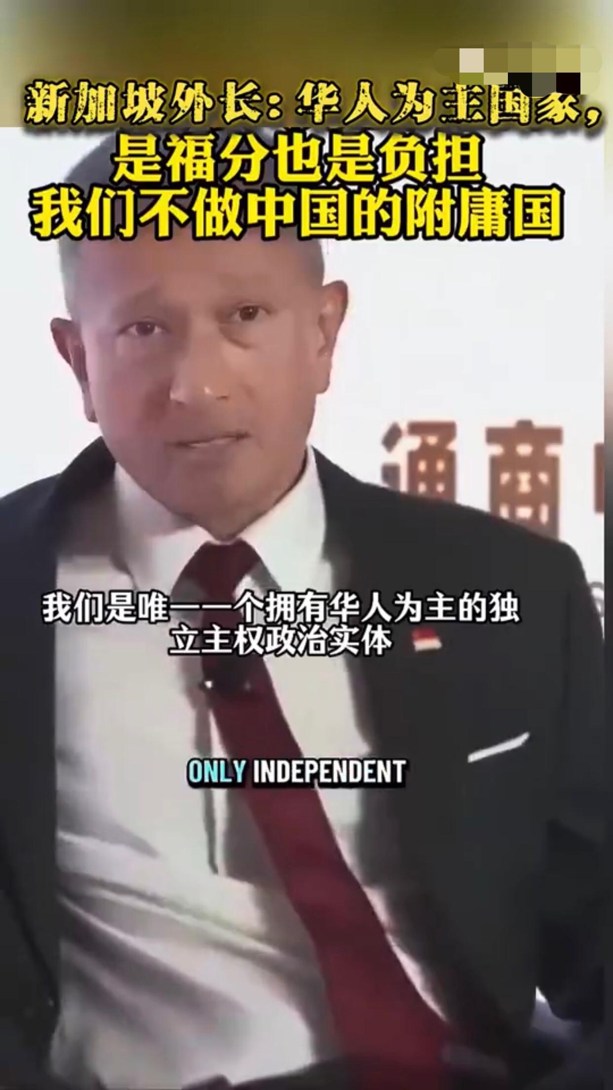 新加坡外长表示,世界上哪个地方有74%的人口具有华人血统,答案不是中国就是新加坡,但我们是独一无二的,我们是唯一一个拥有华人为主的独立主权政治实体,这对新加坡而言,有时既是一种福气,又是一种负担,新加坡的价值主张不是成为中国的另一个城市,一个拥有600万人口的中型中国城市,我们的价值主张是‘同中存异‘,我们确实以华人为主并且懂普通话,但差异在于体现自身价值,如果我们忘记了保持独特性的必要,那便是我们对中国失去价值之时,那么我们就有可能成为中国的附庸,如果有一天,新加坡仅仅成为一个附庸国或朝贡国,或者新加坡不能说不,那便是我们失去价值之日。 现实是,新加坡就是美国的附庸国,唯美国马首是瞻,新加坡的独立性和价值由美国说了算。