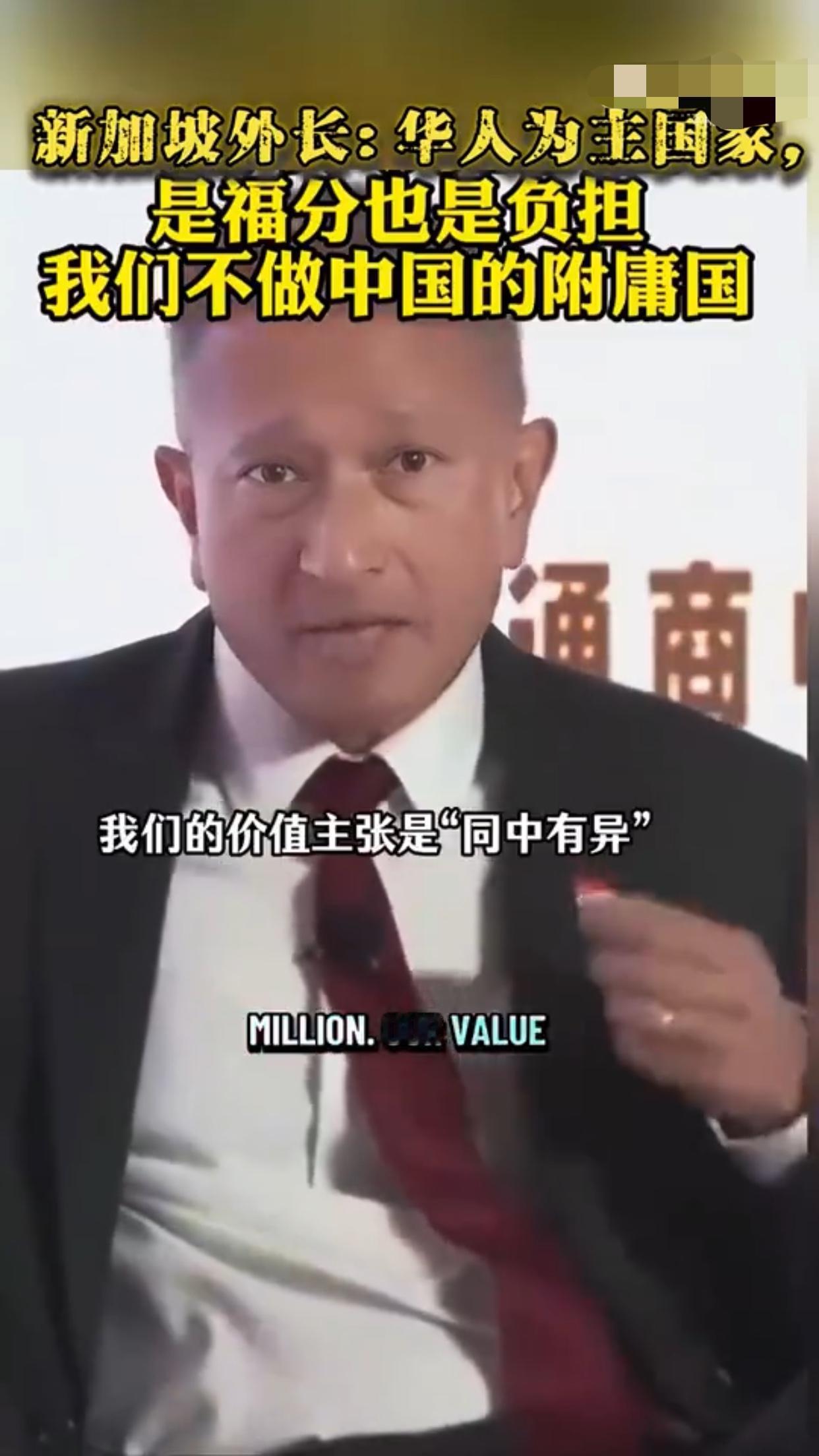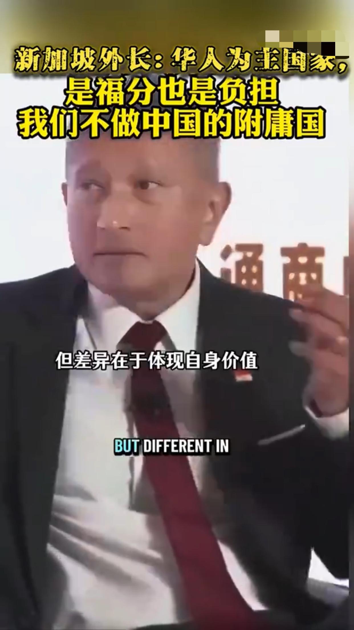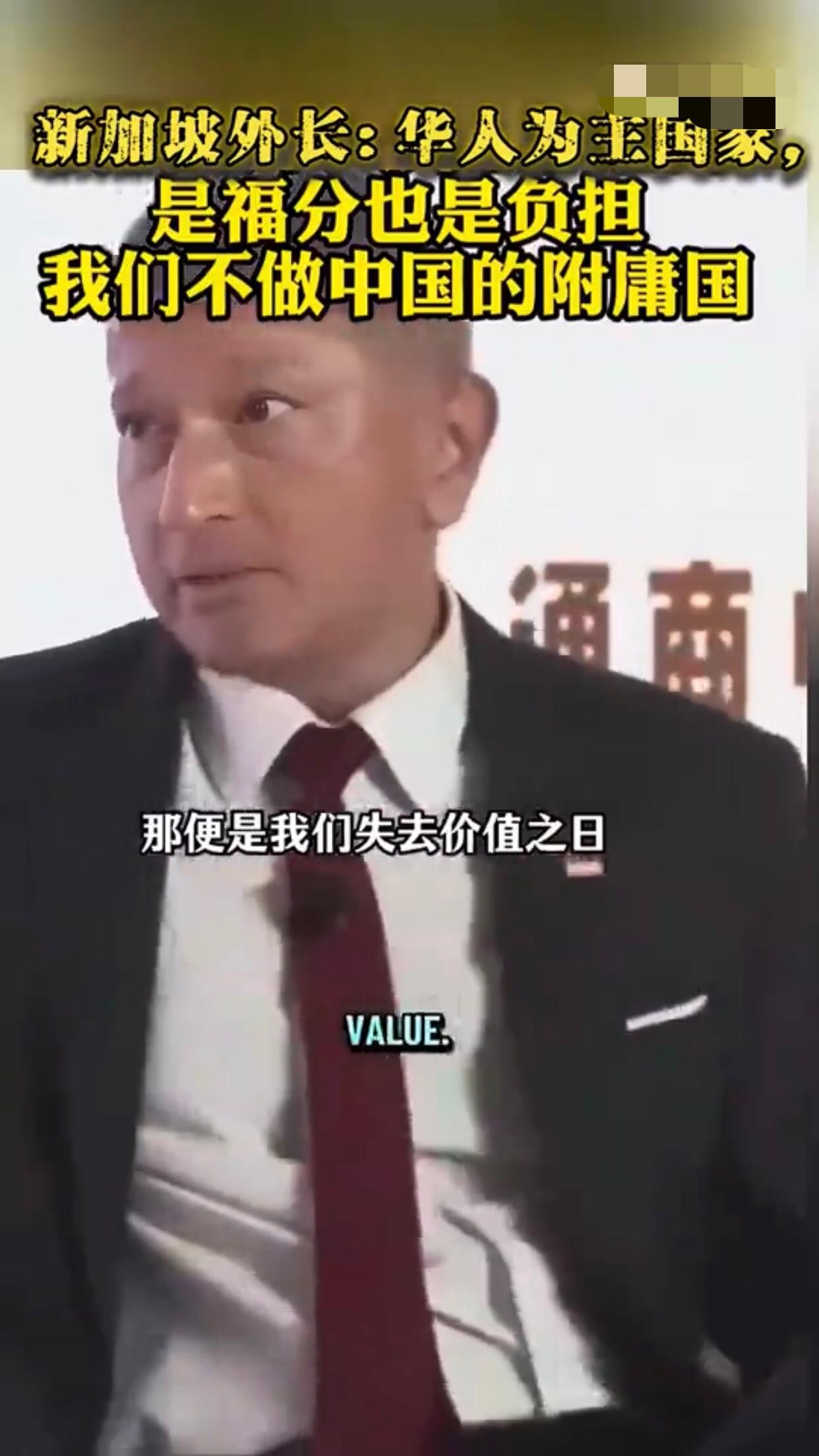 新加坡外长表示,世界上哪个地方有74%的人口具有华人血统,答案不是中国就是新加坡,但我们是独一无二的,我们是唯一一个拥有华人为主的独立主权政治实体,这对新加坡而言,有时既是一种福气,又是一种负担,新加坡的价值主张不是成为中国的另一个城市,一个拥有600万人口的中型中国城市,我们的价值主张是‘同中存异‘,我们确实以华人为主并且懂普通话,但差异在于体现自身价值,如果我们忘记了保持独特性的必要,那便是我们对中国失去价值之时,那么我们就有可能成为中国的附庸,如果有一天,新加坡仅仅成为一个附庸国或朝贡国,或者新加坡不能说不,那便是我们失去价值之日。 现实是,新加坡就是美国的附庸国,唯美国马首是瞻,新加坡的独立性和价值由美国说了算。