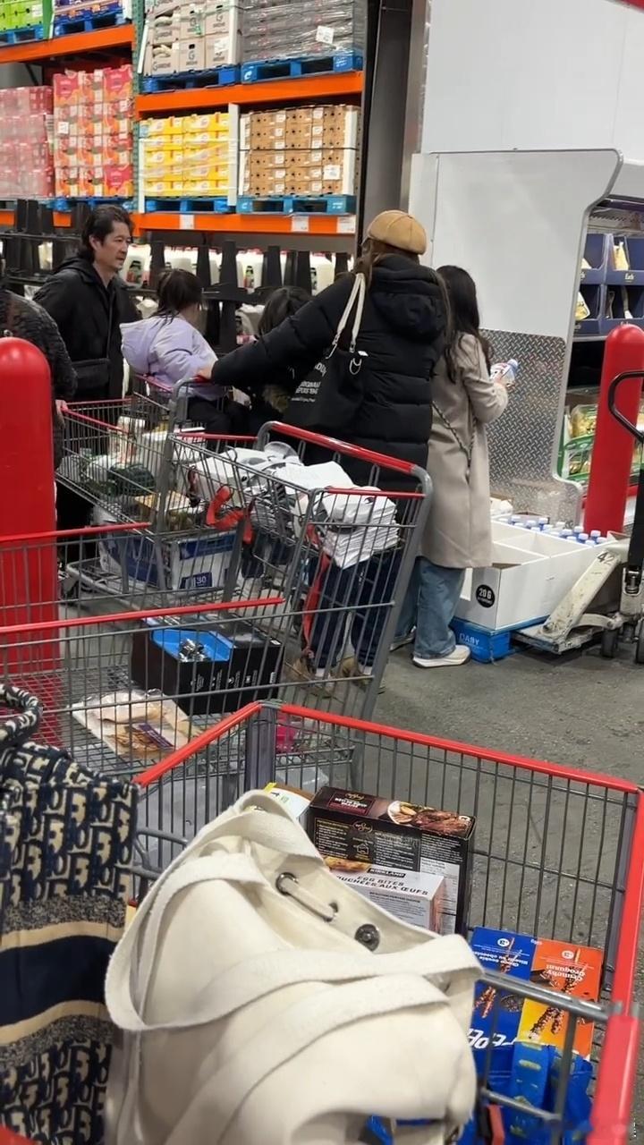 钟嘉欣一家加拿大逛超市加拿大超市偶遇钟嘉欣一家 钟嘉欣一家四口