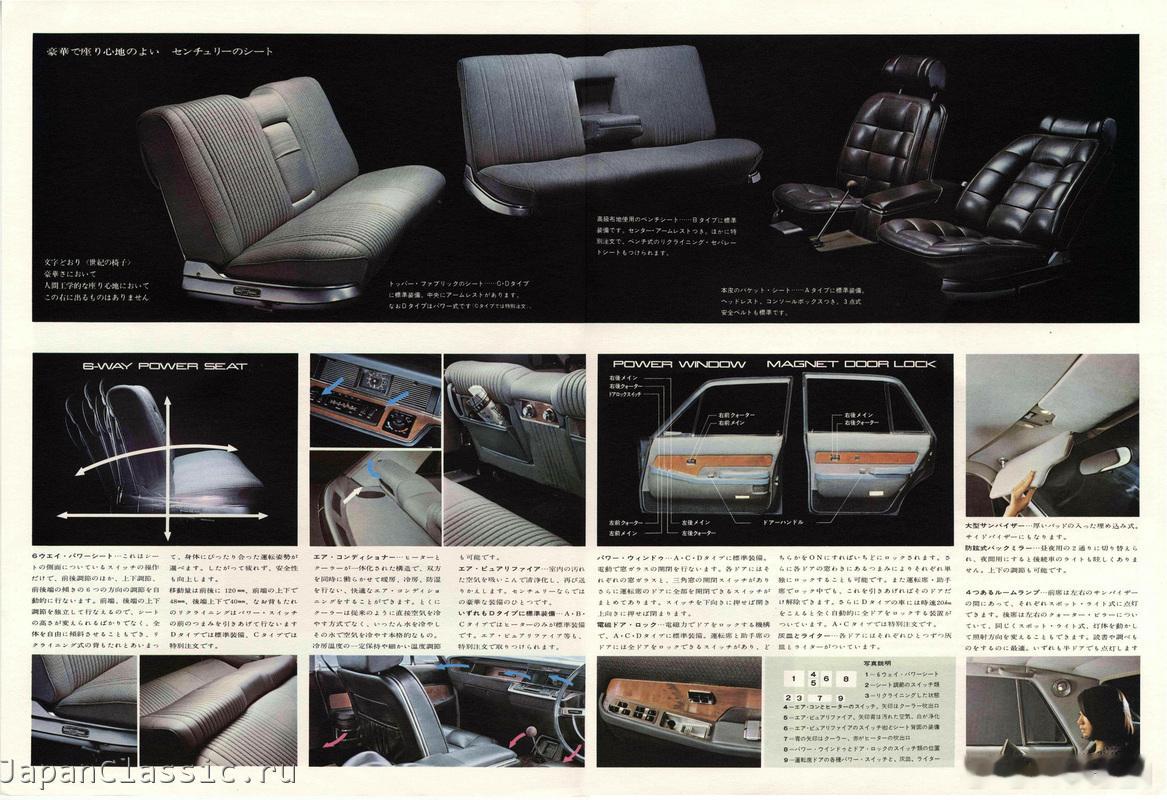 现在想来,如今这个世纪GRMN其实是有历史渊源的……早在60年代丰田世纪的初代初期(3.0 V8时期),其B型是入门车(3MT怀档,手摇窗),C、D是豪华车(3AT怀档)。而A型搭载了独一份儿的4MT,而且还是换档更直接的地板档!其他车前排是长条沙发,而他是独立、有头枕、有三点式安全带的运动座椅!甚至标配后LSD……摆明了就是运动版。世纪GRMN这个白色,感觉和初代Brochure这个颜色也有渊源……妇科聊汽车常识
