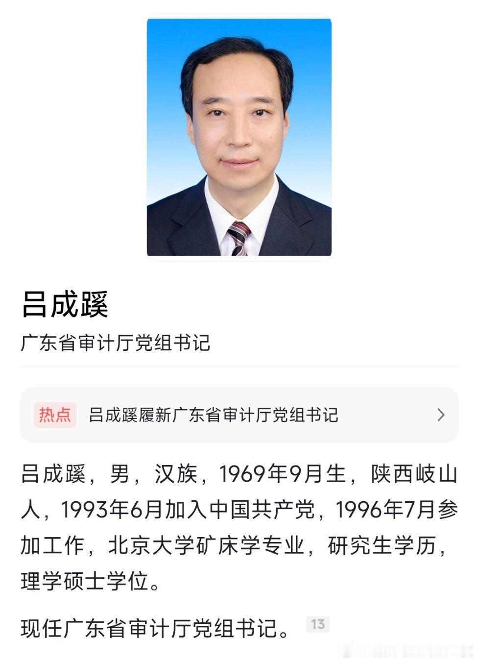 吕成蹊已任广东省审计厅党组书记。