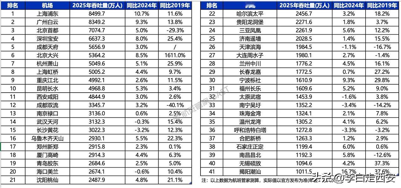 看看2018年巅峰时期的西安咸阳国际机场有多厉害 国际(地区)航线达到了58条, 从西安出发,直飞英国伦敦、 西班牙马德里、美国洛杉矶、芝加哥 等国际城市。 2019年开通西安直飞 土耳其伊斯坦布尔、葡萄牙里斯本、 阿联酋迪拜等国际著名城市航线。 2019年旅客吞吐量4722.1万人次。 全国排名第八, 2025年咸阳国际机场吞吐量 不敌杭州萧山和重庆江北, 排名滑落至全国第十一位。 记录我的2025 咸阳机场T5