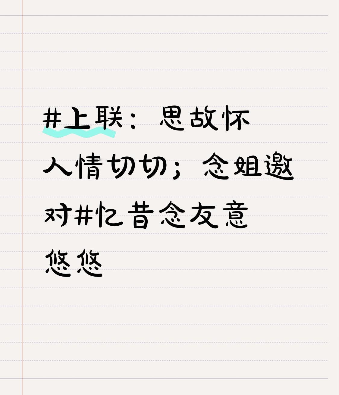 上联:思故怀人情切切;念姐邀对忆昔念友意悠悠。