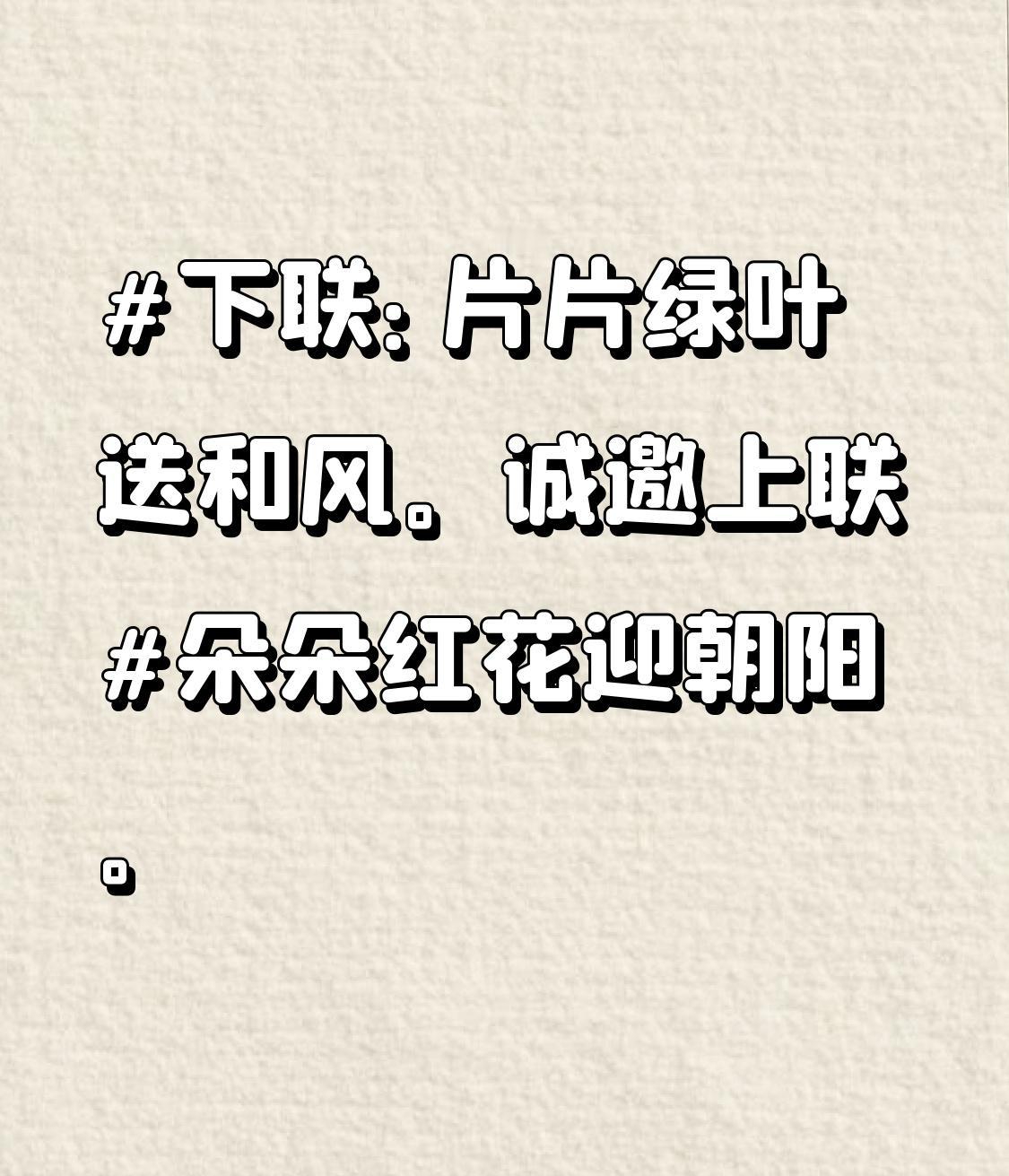 下联:片片绿叶送和风。诚邀上联朵朵红花迎朝阳。