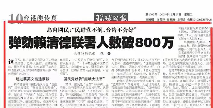 弹劾赖清德网络联署人数已超800万,当年蔡英文高票当选台湾地区领导人也只有817万票。但是今天的联暑人数尚在增加中! 此次台湾蓝白两营万众一心众志成城,志在拉下赖清德这个王八蛋! 赖清德胡言乱语,胡作非为,疯狂至极,已让台湾民众彻底的对他失去了信心! 小小台湾仅2300万人,真正的合法投票人数也仅1000多万,今天已超800万人支持弹劾赖清德了! 已充分说明了赖清德已彻底的失去了民意! 郑丽文加油加油!祖国是最坚强的后盾! 赖清德此次即使不下了台,也成了跛脚领导人了!他的权力将被民意代表极大的限制!他的所谓领导人将名存实亡! 赖清德这个台独金孙,最终会自取其辱,自取灭亡!遗臭万年!