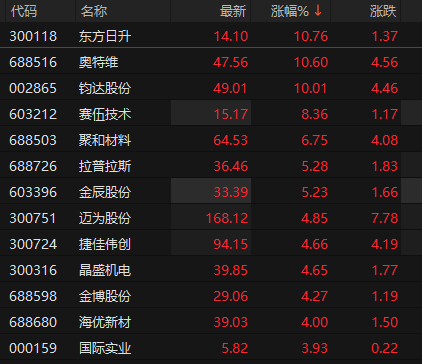 上证报中国证券网讯12月24日午后,光伏设备板块震荡走强,截至13时34分,钧达股份涨停,东方日升、奥特维涨超10%,赛伍技术、迈为股份等跟涨。