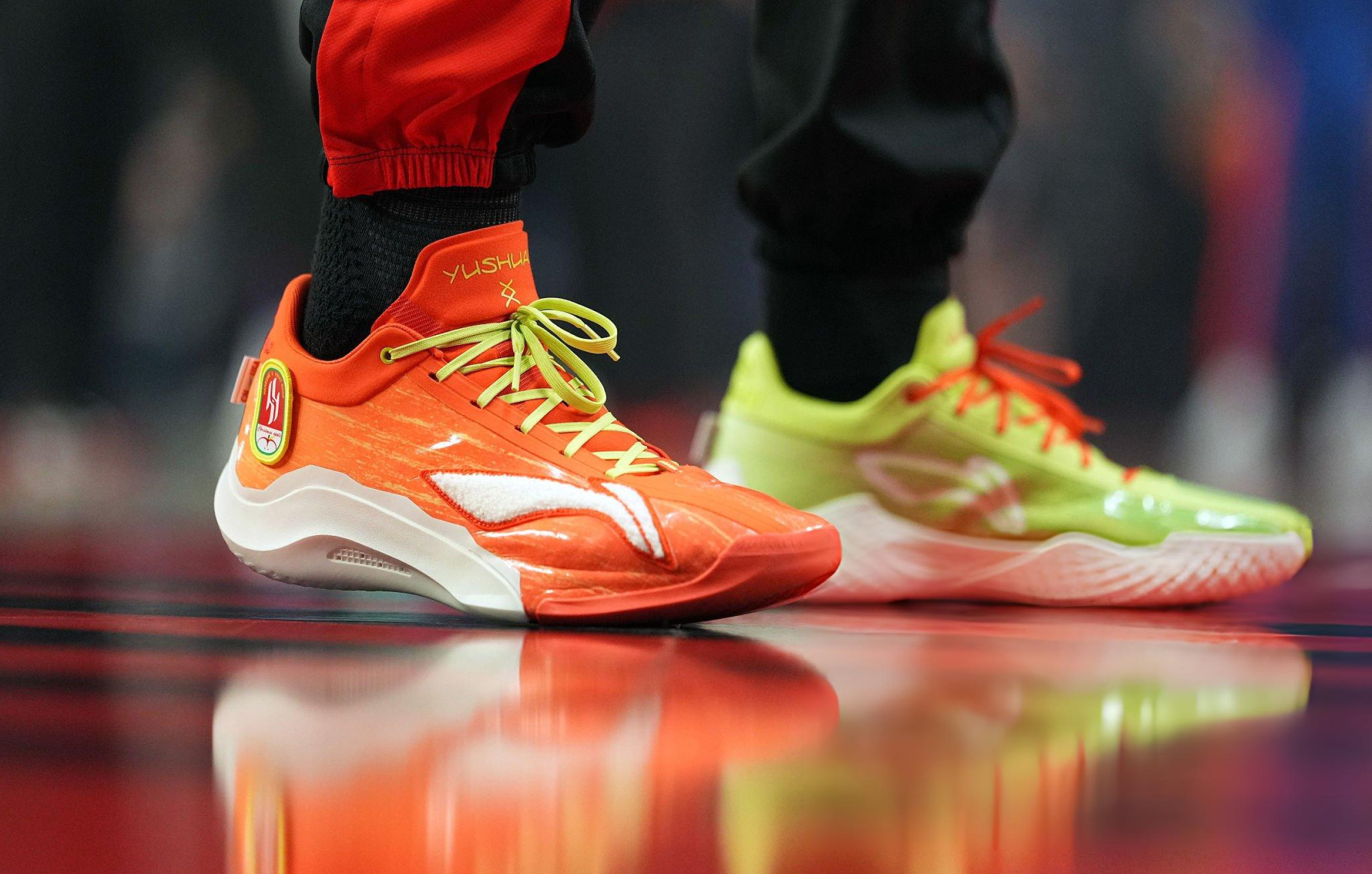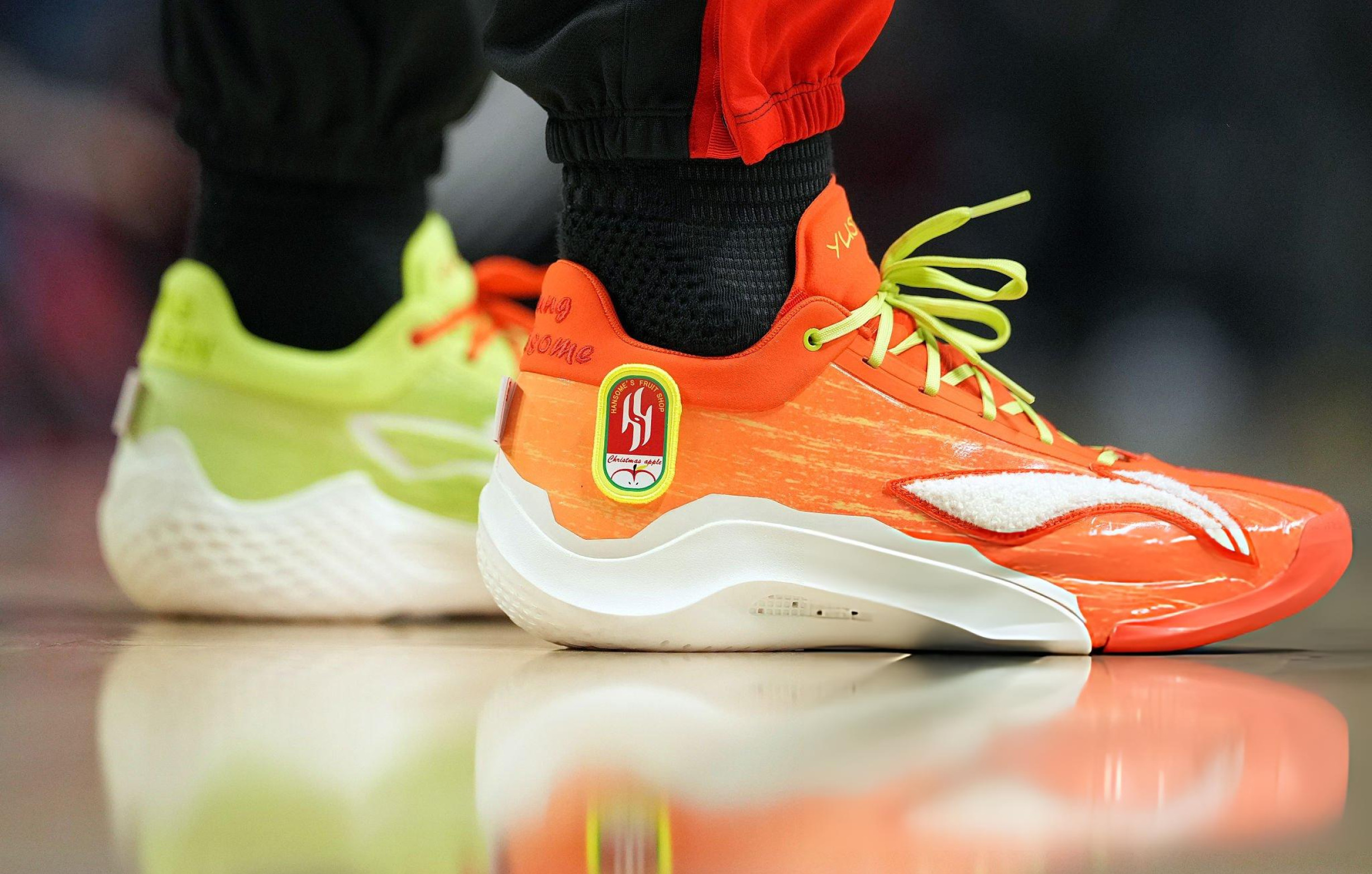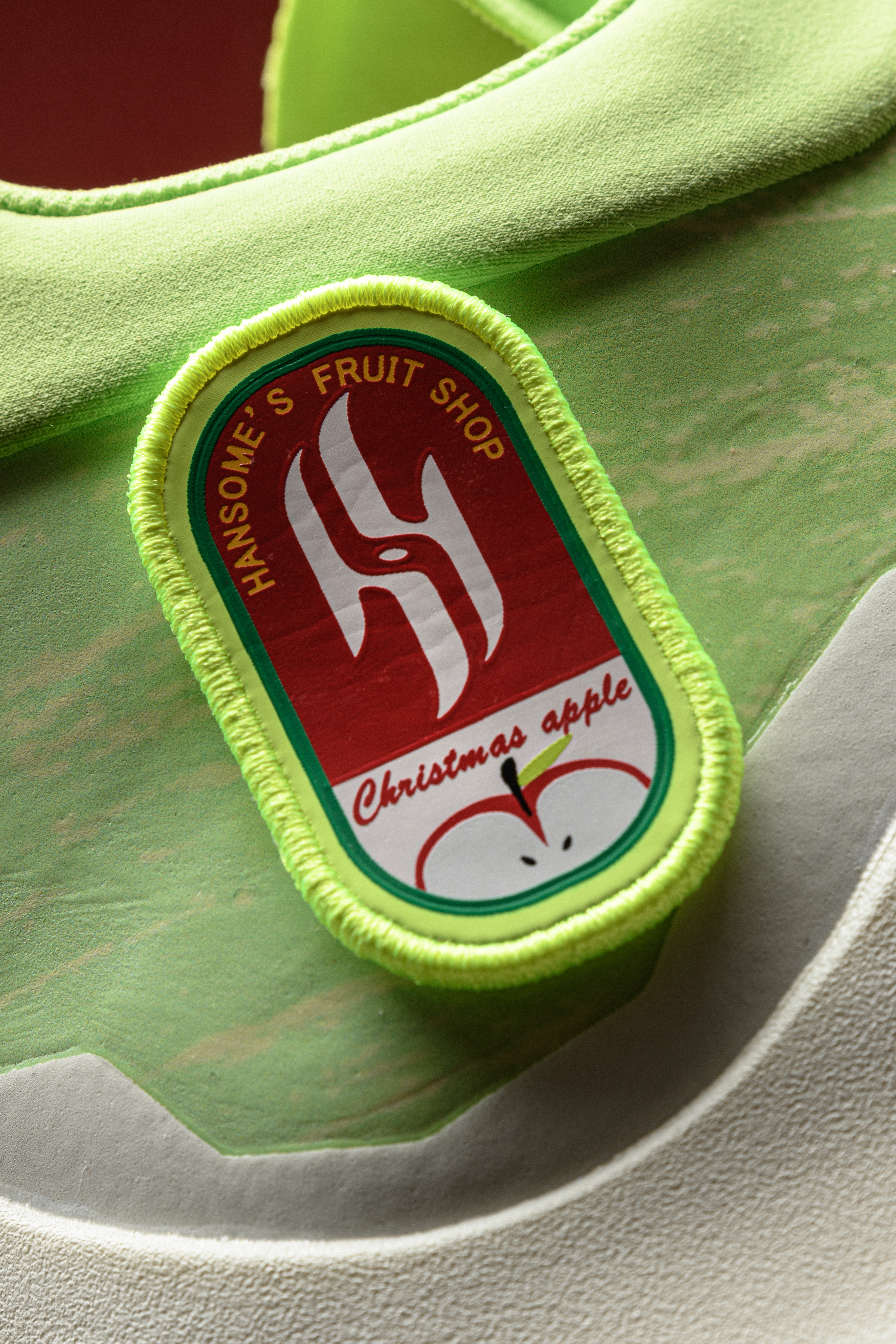 平安夜的比赛杨瀚森上脚一双特别的驭帅20圣诞PE。平安夜 平安果 鸳鸯配色 还有毛茸茸的logo 像冬天的雪 两侧的Patch 绣着瀚森水果店有意思的小细节 话说水果吃多了 也得用火锅去去甜 送对手的· 加油小杨鞋控的日常杨瀚森替补登场