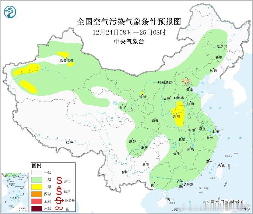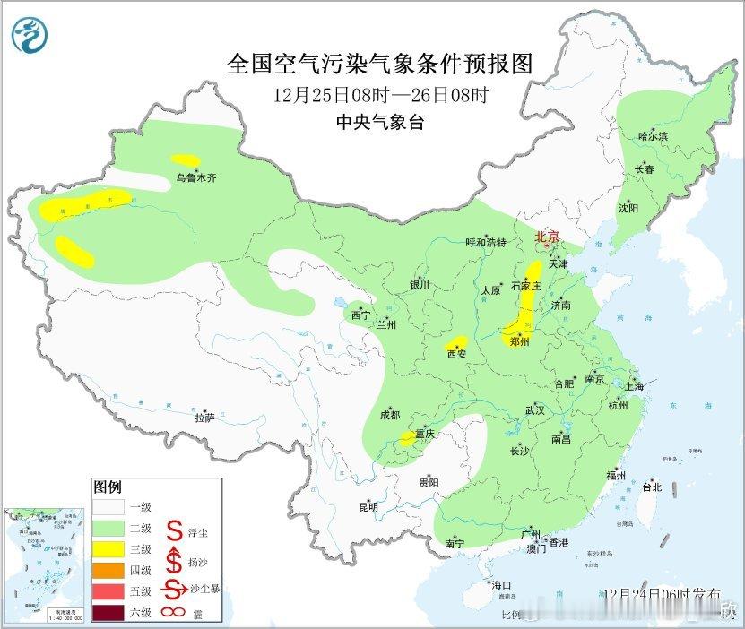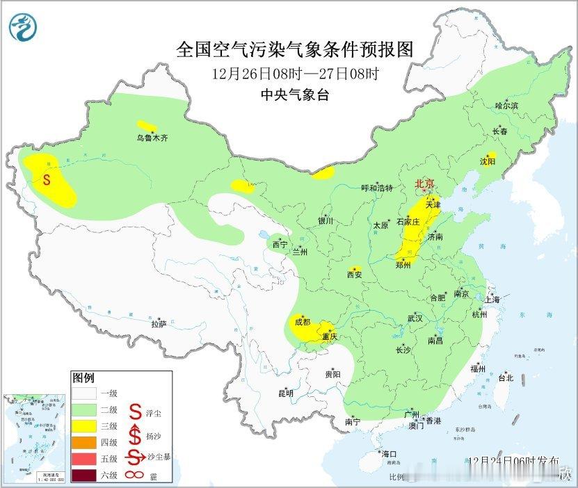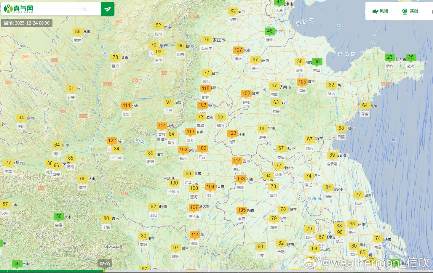 【雾和霾】今晨在山东西部和河南北部、安徽南部、湖北东部、湖南中部等地出现了大雾,对应降水过后,湿度较大,夜间气温下降,导致水汽凝结。其中山东局地出现特强浓雾,8时能见度武城40米、茌平44米。从空气质量看,河南山东部分站点还有轻度污染,有点霾。24-25日因为有冷空气南下,低空大多为偏北风,中东部大气扩散条件好,雾和霾被抑制。26-28日处于地面高压后部或弱低压区,低空大多为偏南风,华北中南部、黄淮中西部等地大气扩散条件逐步转差,有轻至中度霾。29日起,受冷空气影响,霾天气逐步减弱或消散。