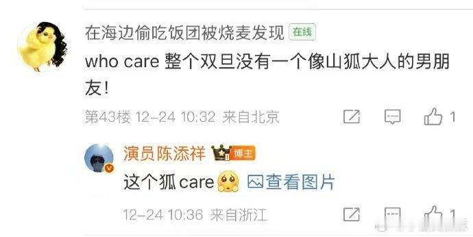 陈添祥狐care 平安夜陈添祥新片白发男狐狸精太惊艳!在超话翻牌和粉丝互动,粉丝说无人care,他“狐care”回应,这宠粉程度绝了!