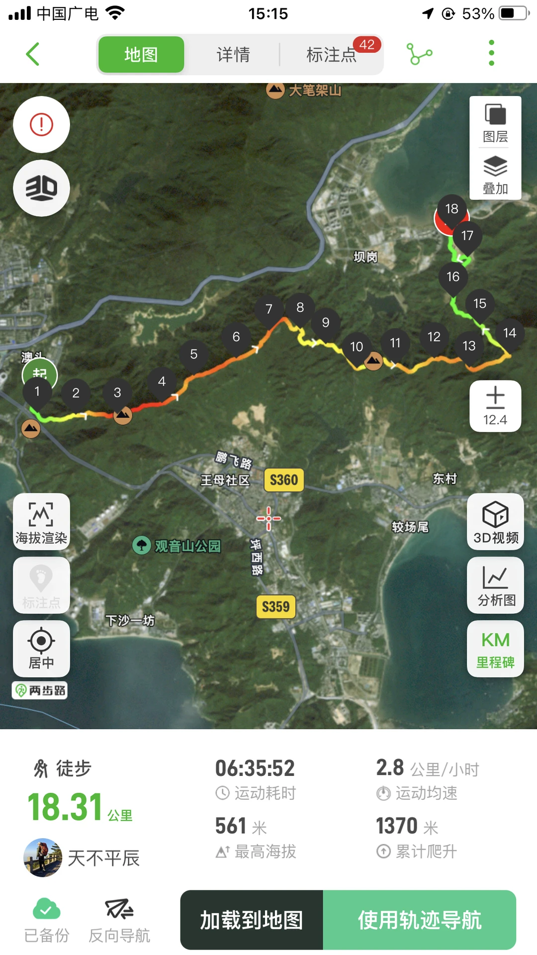 9:30从市区乘坐E11公交到葵涌中心转M569公交到比克绿道公园,并开始记录轨迹