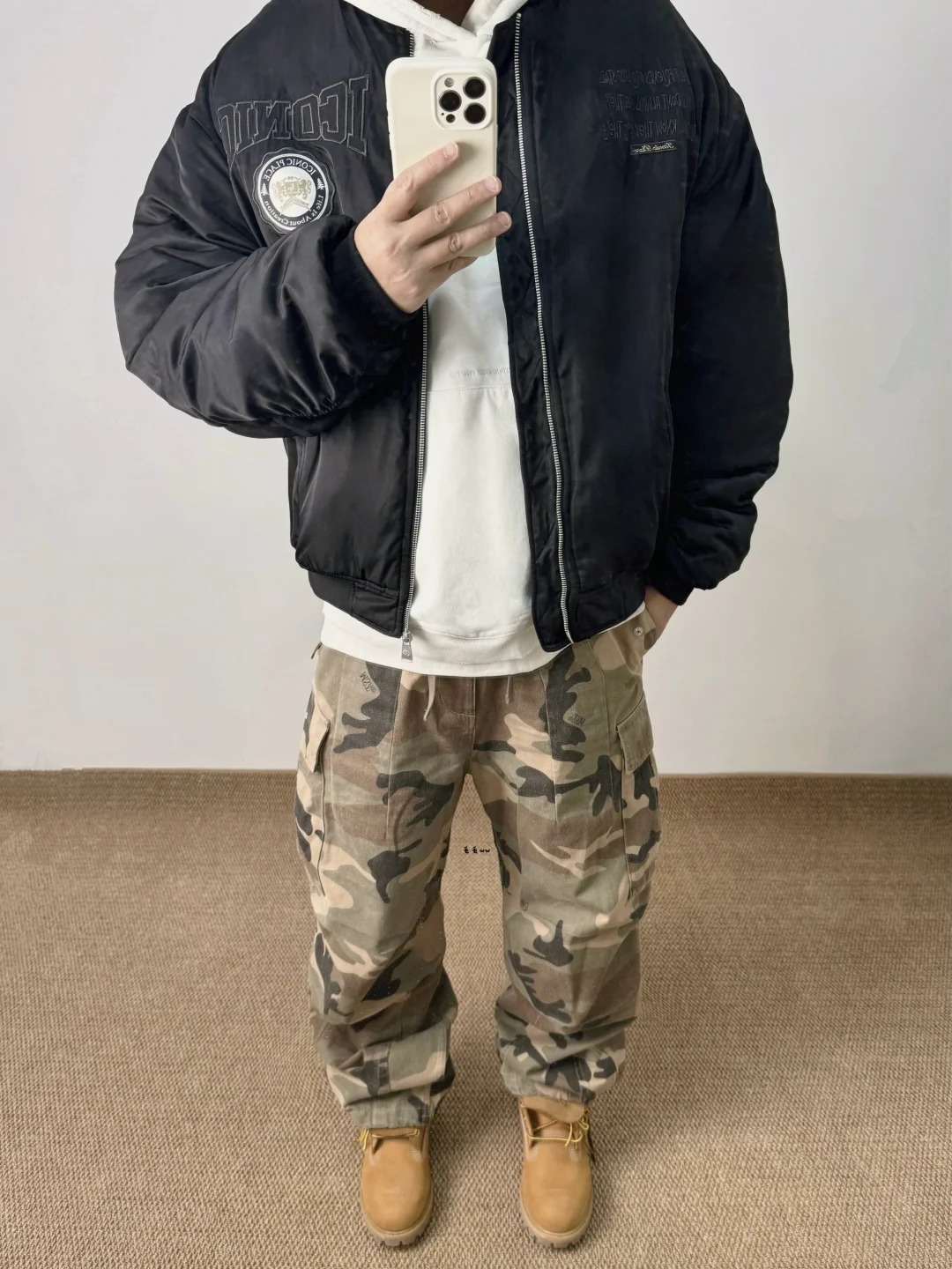 -如果一辈子,只能穿一套衣服,我的“永久”套装:bomber外套+hoodie卫衣+cargo工装;小伙伴们,大家的选择会是什么呢 . —————— . 🧥Iconic Place // M . 👖Massulti // L . 👟Timberland / 大黄靴 // 42 . —————— . ✏️本人178cm75kg 球鞋尺码265mm(正常EU42) . 💭以上均为我个人观点,不喜勿喷,欢迎讨论