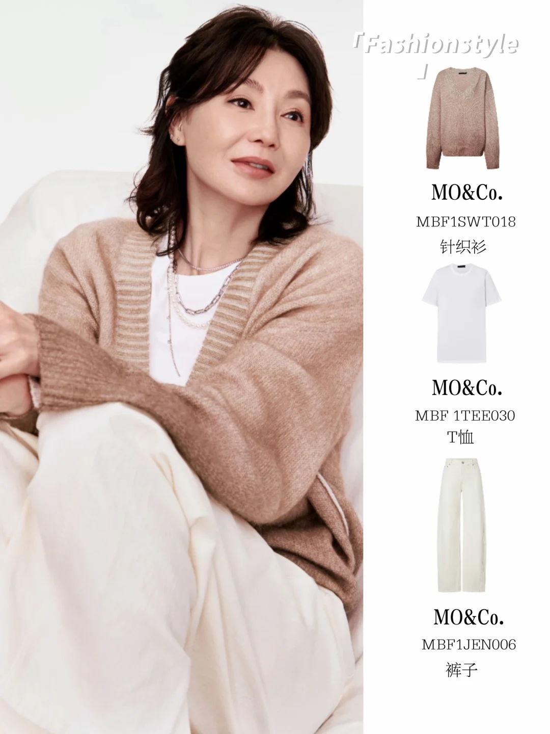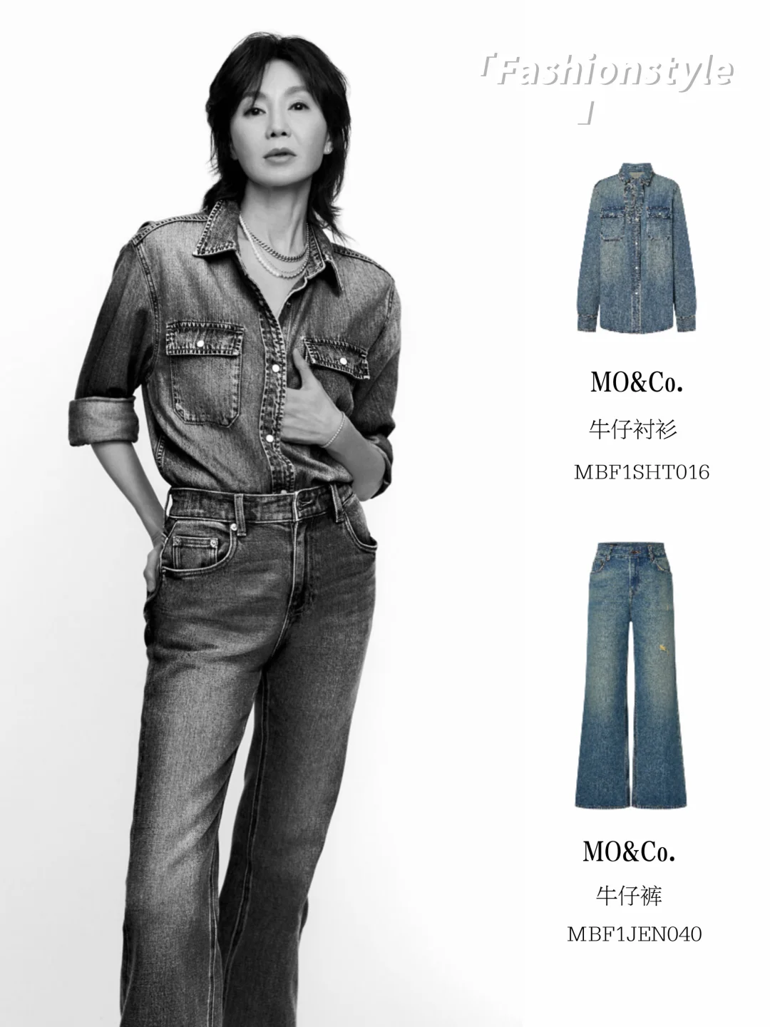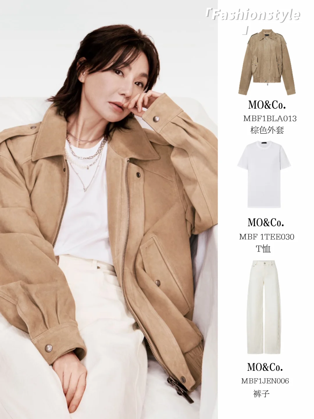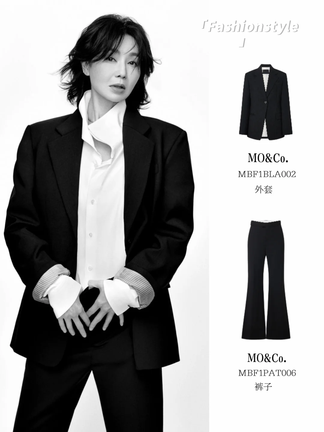 无论是黑西装+白衬衫的帅,牛仔套装的酷,还是针织衫的温柔,姐都演绎出了自己的味道,让我们看到了MO&Co.的更多可能性
