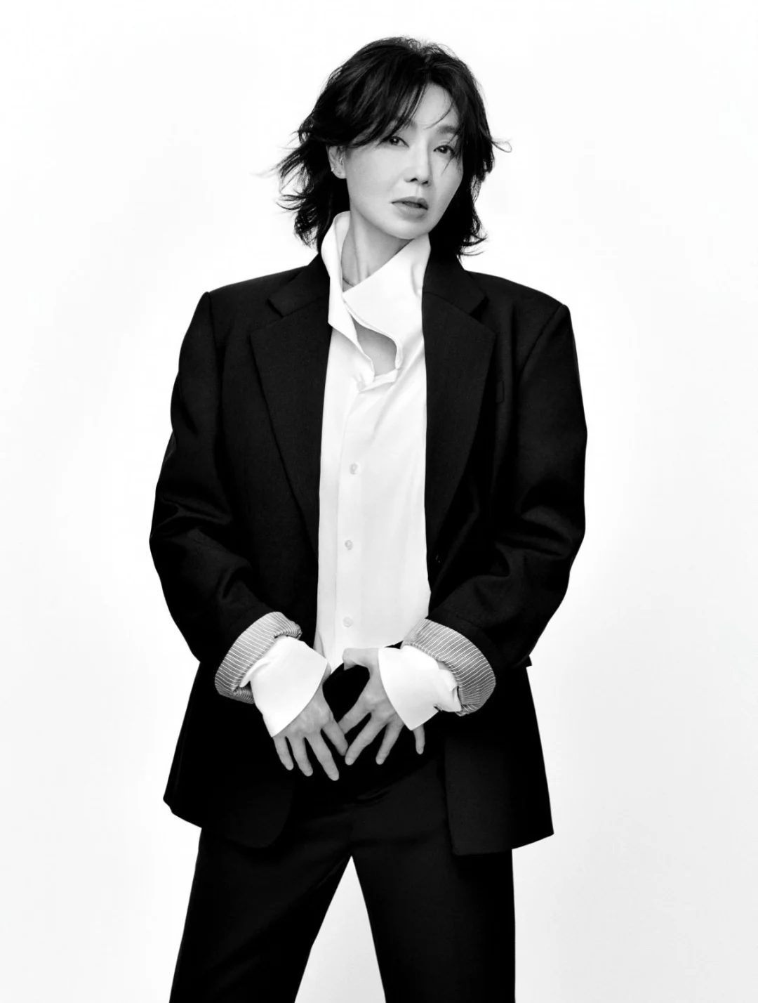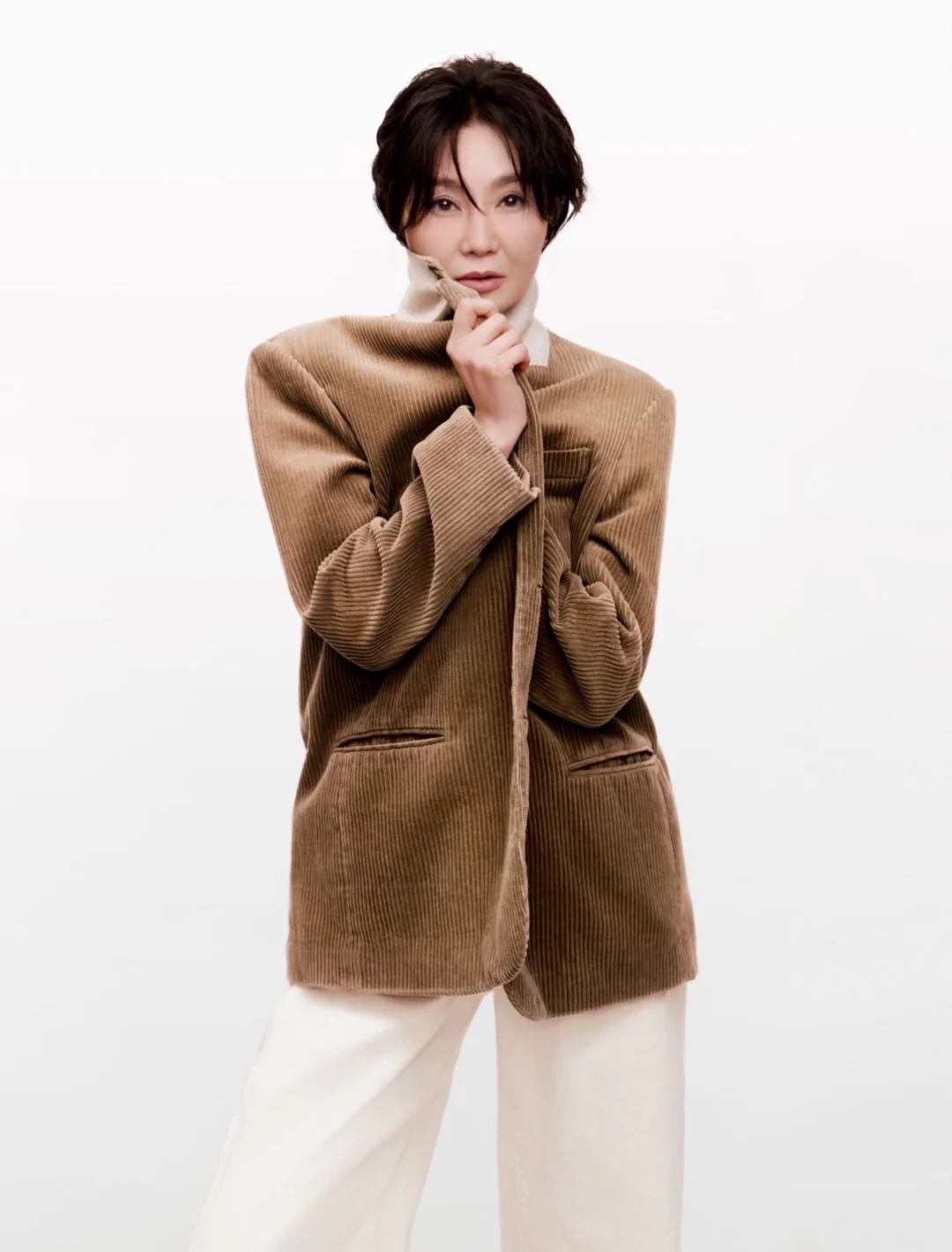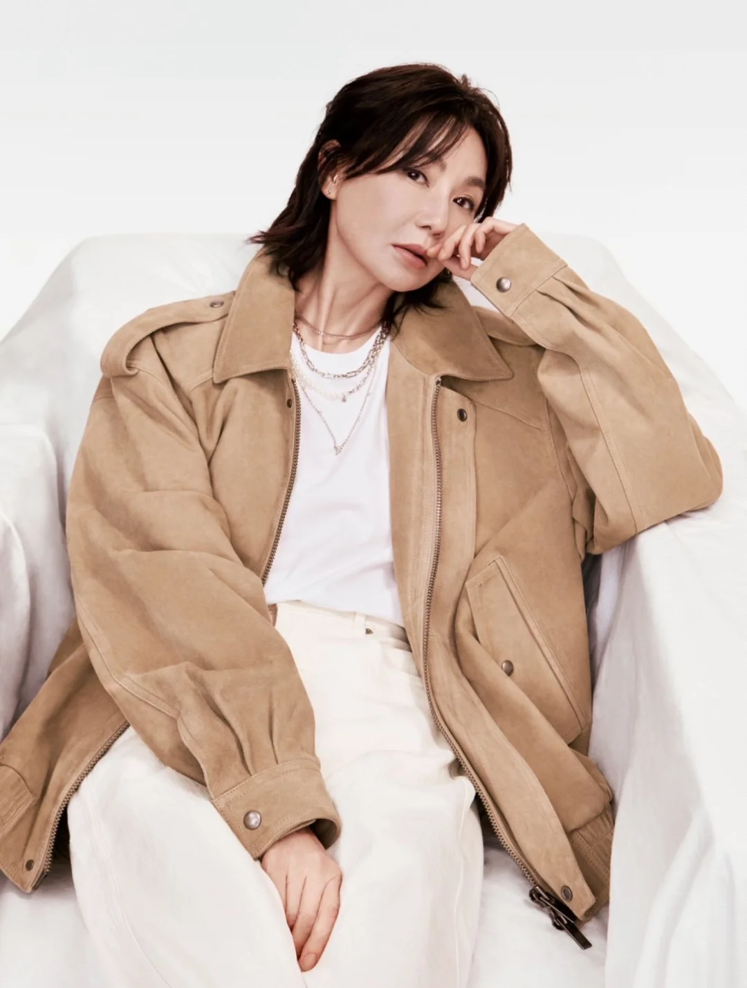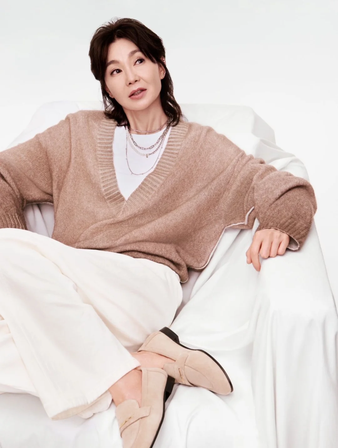 无论是黑西装+白衬衫的帅,牛仔套装的酷,还是针织衫的温柔,姐都演绎出了自己的味道,让我们看到了MO&Co.的更多可能性