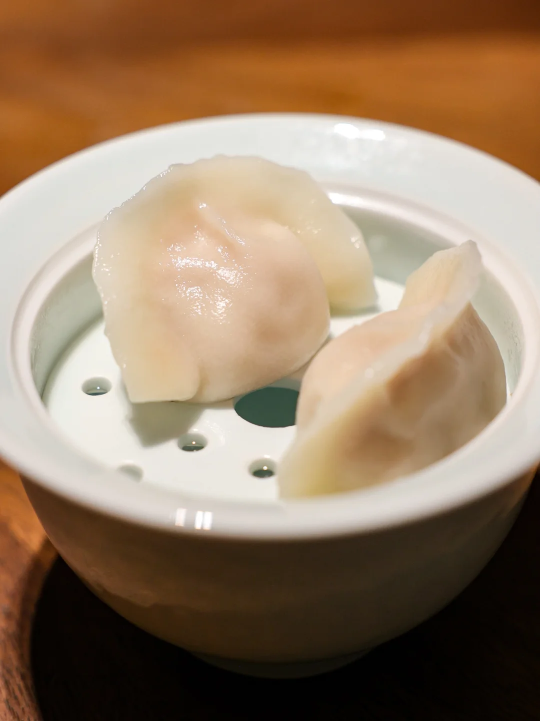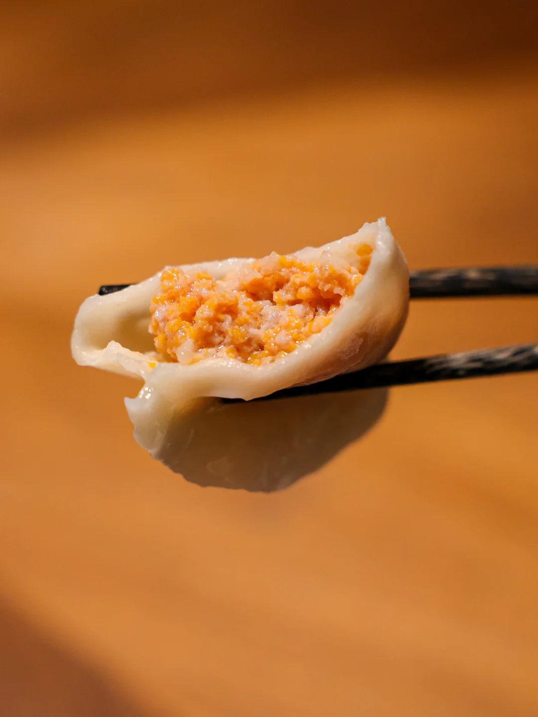是那种鲜味会在吞完饺子之后留存在嘴里的鲜,然后返回一点海胆的甘甜,加上偏软偏滑的饺子皮,像热口的冰淇淋一样顺滑。
