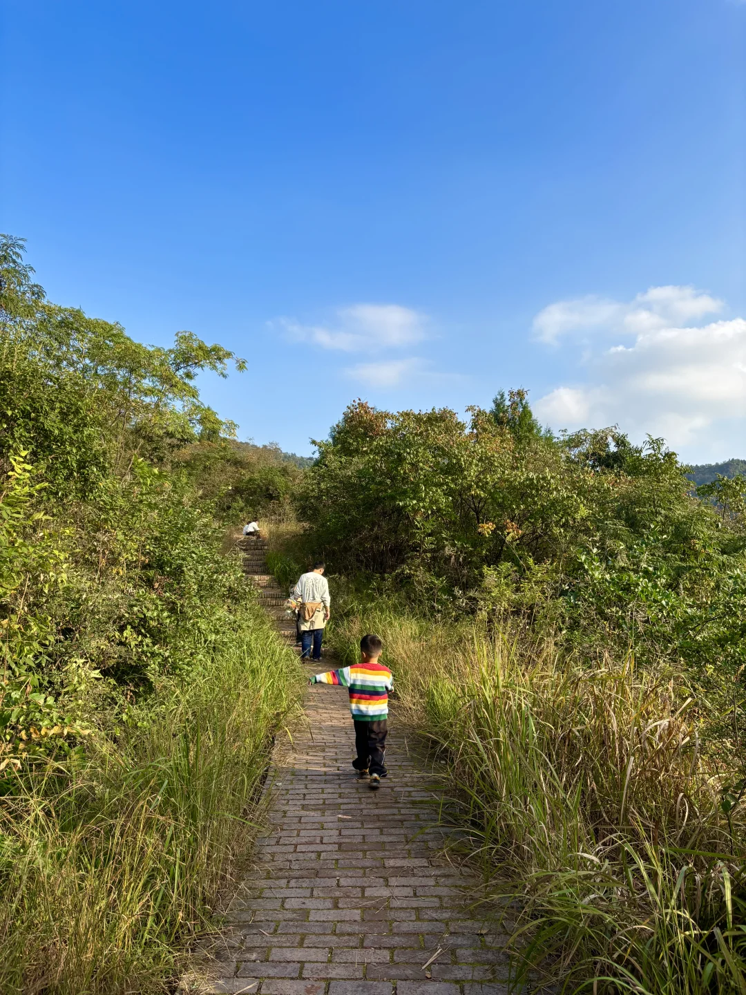 🗺️徒步路线:沿着步道阶梯上山,路迹明显,只有一条路线。前半段路植被茂盛,遮荫不晒人;后半段路视野开阔,一览众山小~