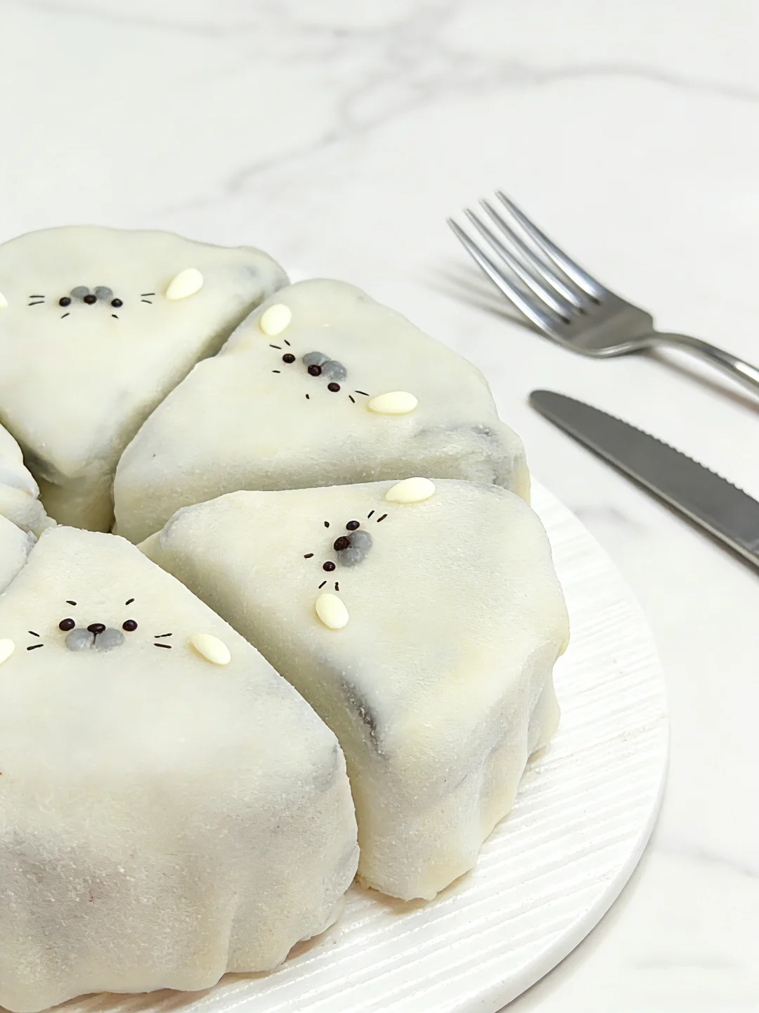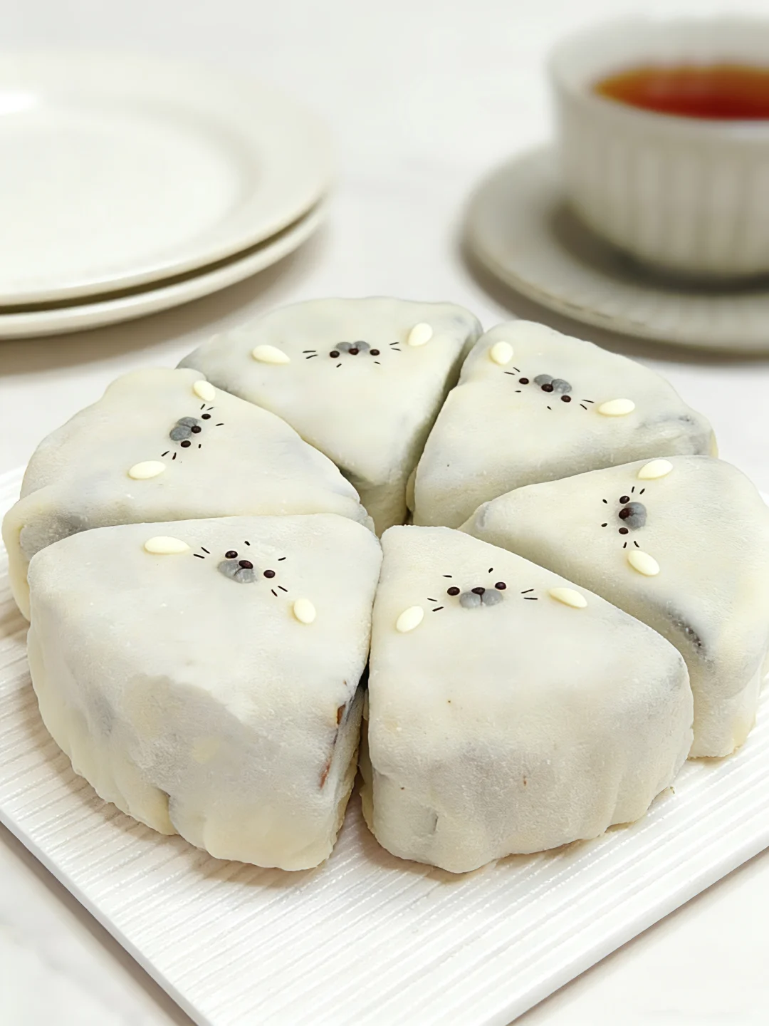 🍰麻薯皮:糯米粉100g|玉米淀粉30g|细砂糖35g|牛奶175g|黄油20g