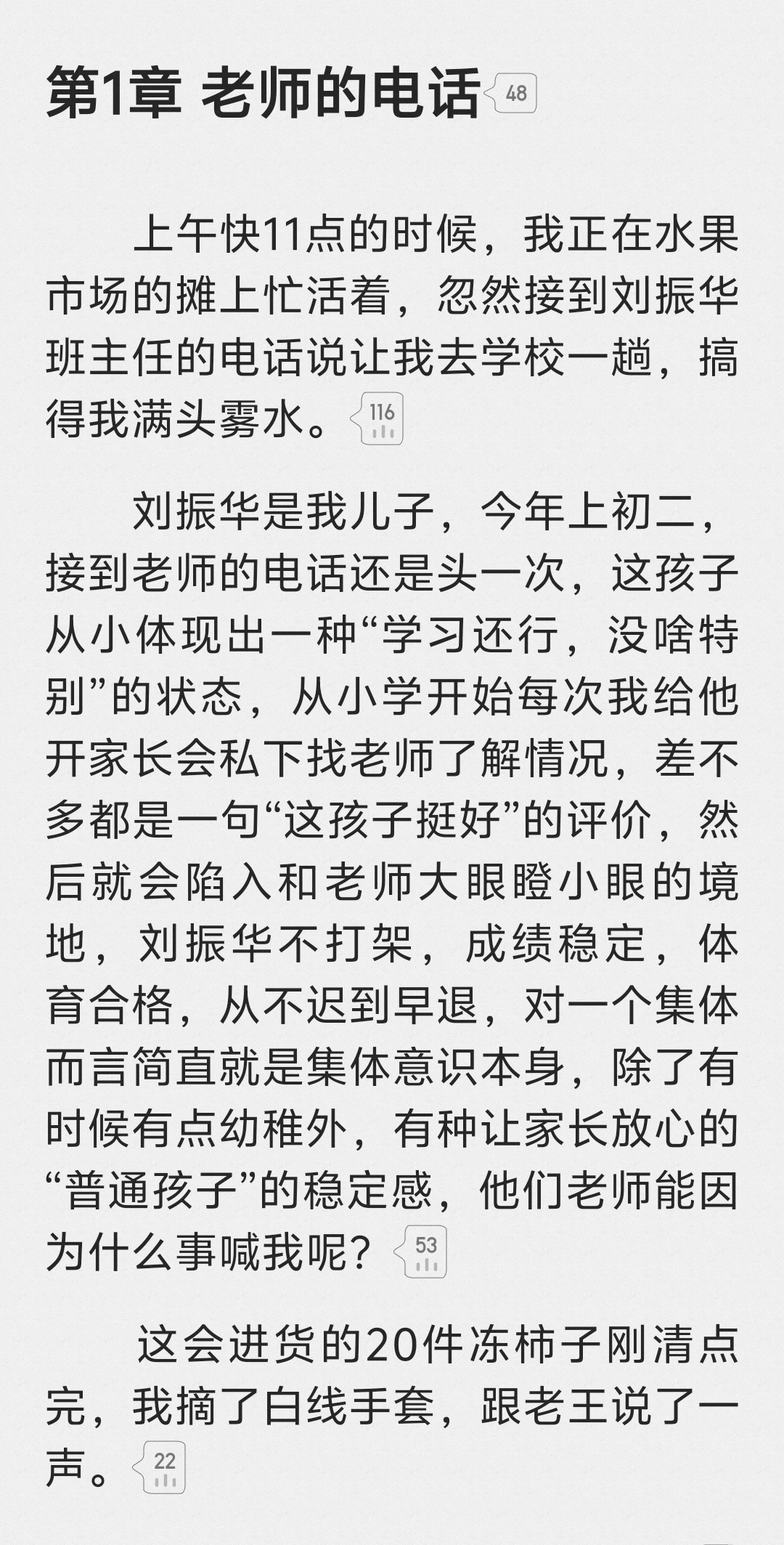 小说就像一杯加了跳跳糖的冰可乐,乍看平平无奇,喝下去却能在嘴里炸开惊喜。张小花用他特有的黑色幽默,把父子亲情、科幻设定和社会现实揉成了一个荒诞却温暖的故事。