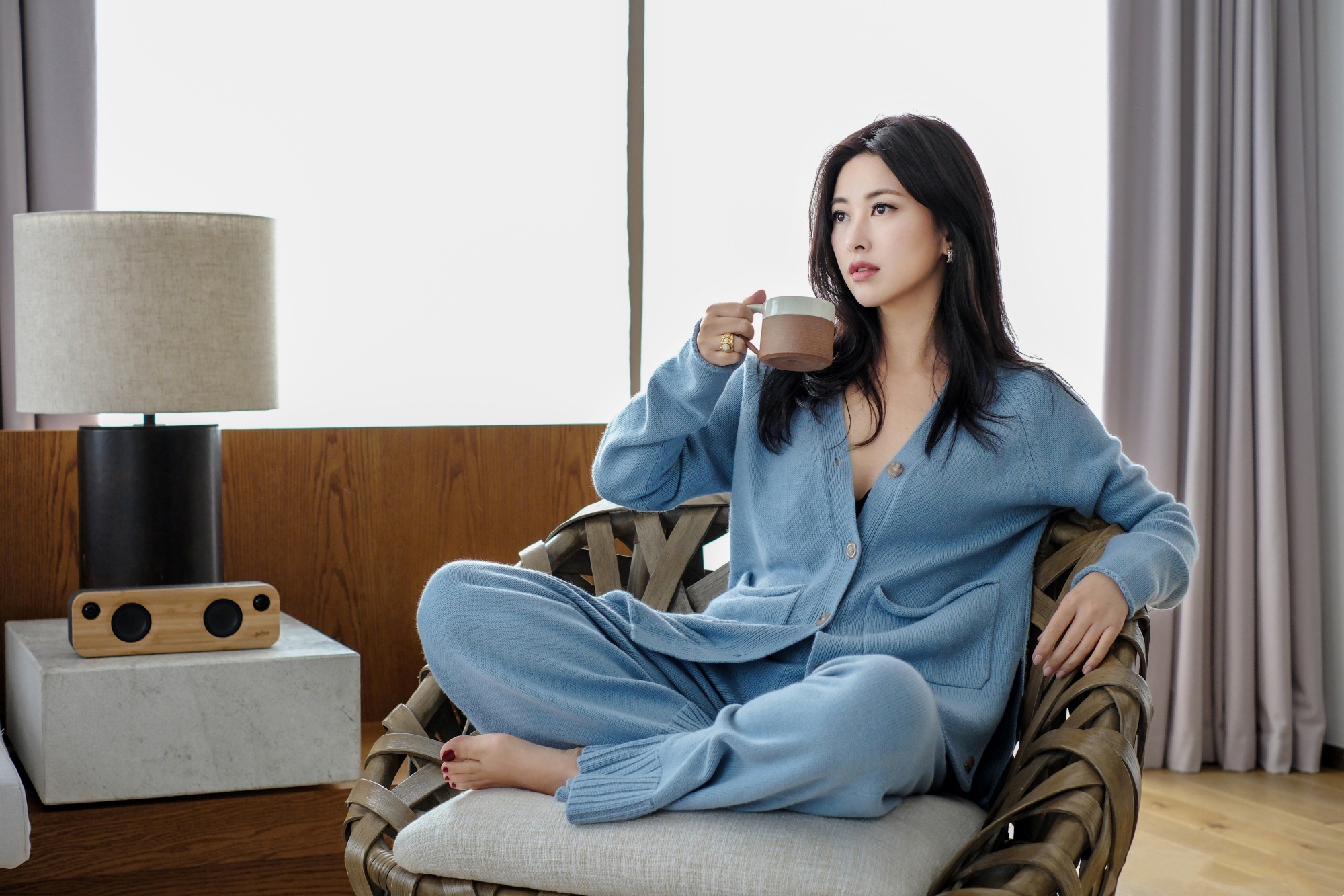 朱珠居家私服,蓝色的温柔与浪漫。朱珠