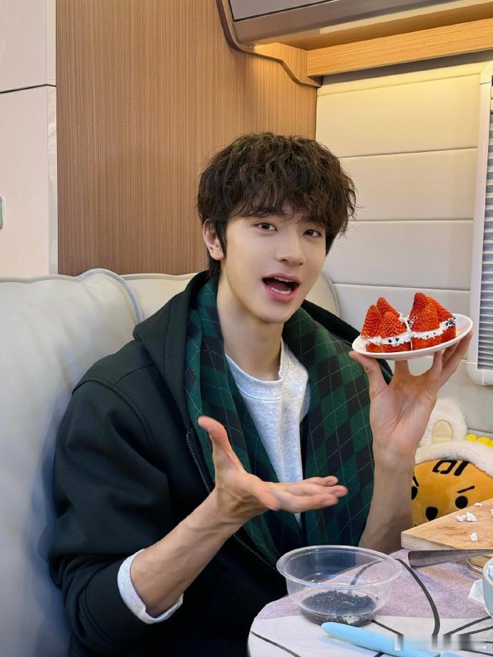 林一自己做的草莓圣诞树 林一自己做的草莓圣诞树看上去还真的是挺好吃!卷毛小狗,圣