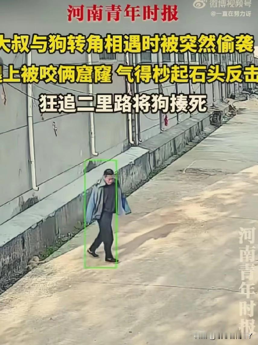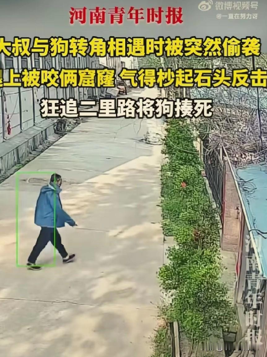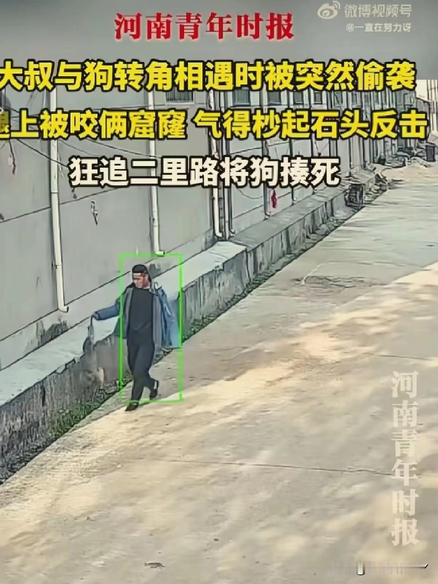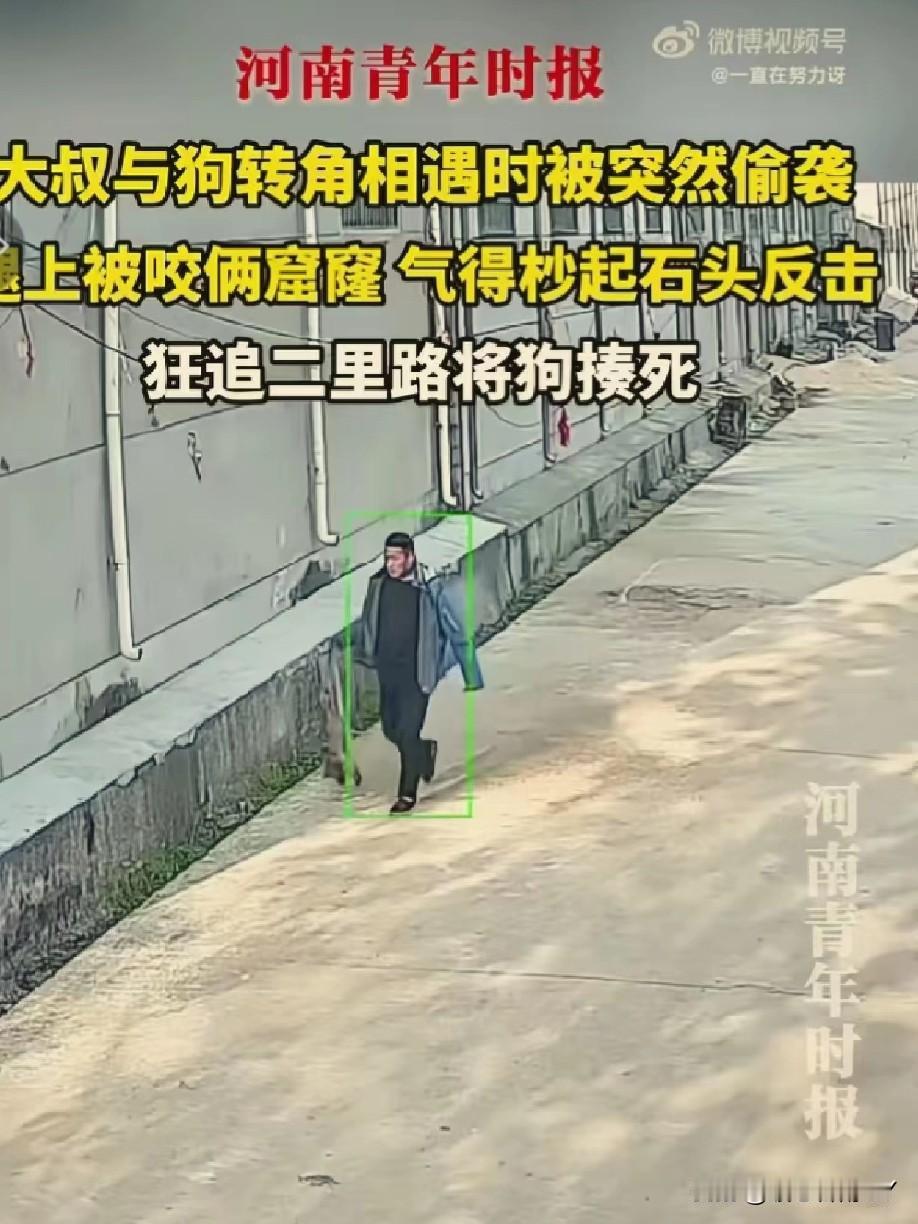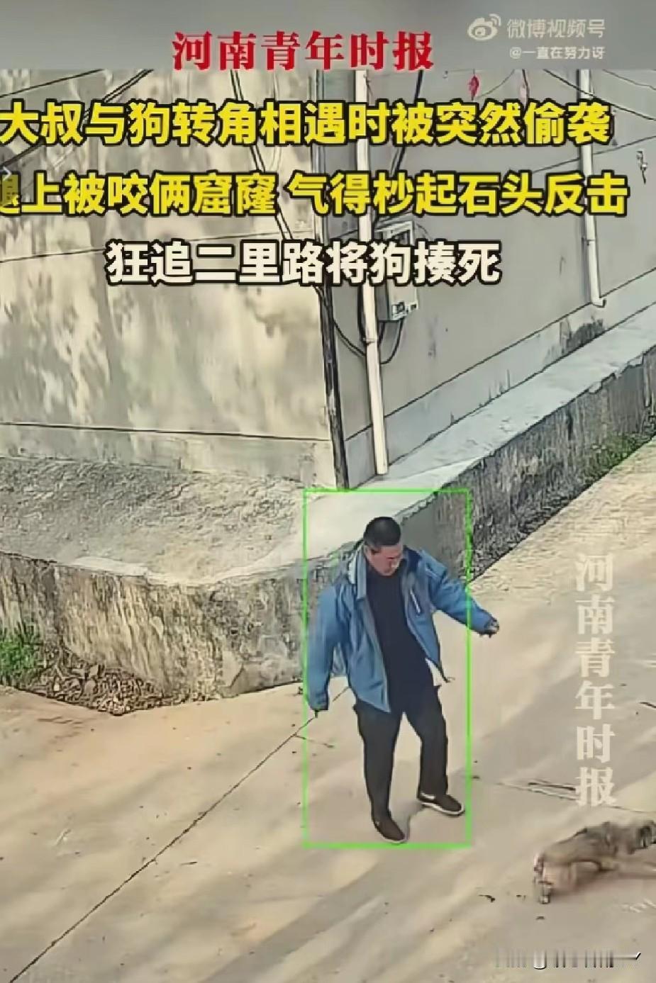 山东大叔追打恶犬:不拴绳之犬,咬伤路人,更碎了养宠人的“体面” 2025年11月21日,山东有一男子在巷口突遭未拴绳的狗偷袭,腿上被咬出两个血窟窿。 他怒不可遏,抄起石头追了二里路,最终将狗打死。 此事看似解气,实则是养犬不规范引发的极端冲突。文明养犬,拴绳是底线。 主人不拴绳,让宠物成了“潜在威胁”;被咬者情绪失控后的反击,也使自己陷入纠纷风险。 目睹这起因未拴绳引发真实事件,我们不妨扪心自问:出门遛狗时,你给自家毛孩子拴绳了吗?这根绳,拴的是对路人的安全,也是养宠人的责任与体面,你真的系好了吗?