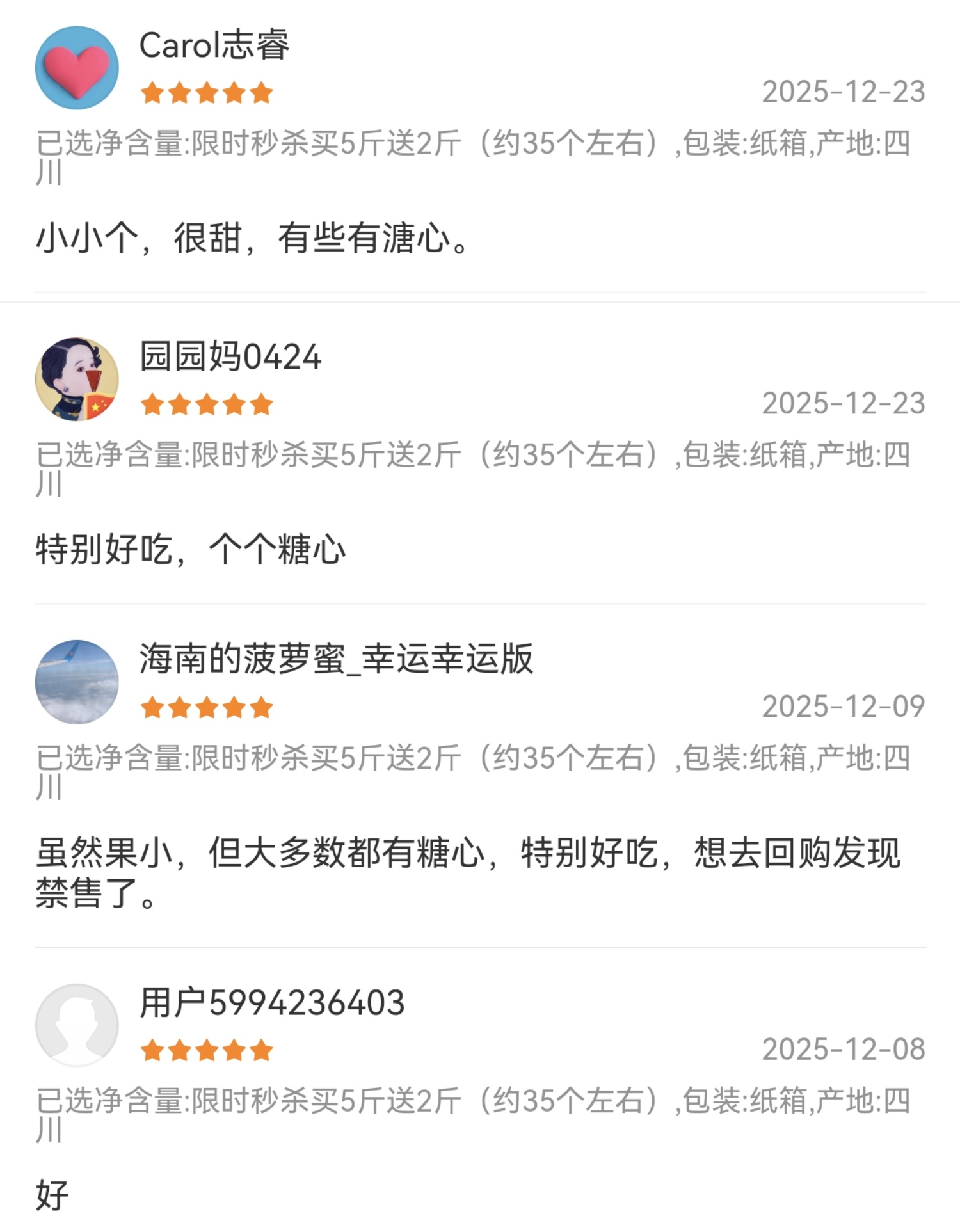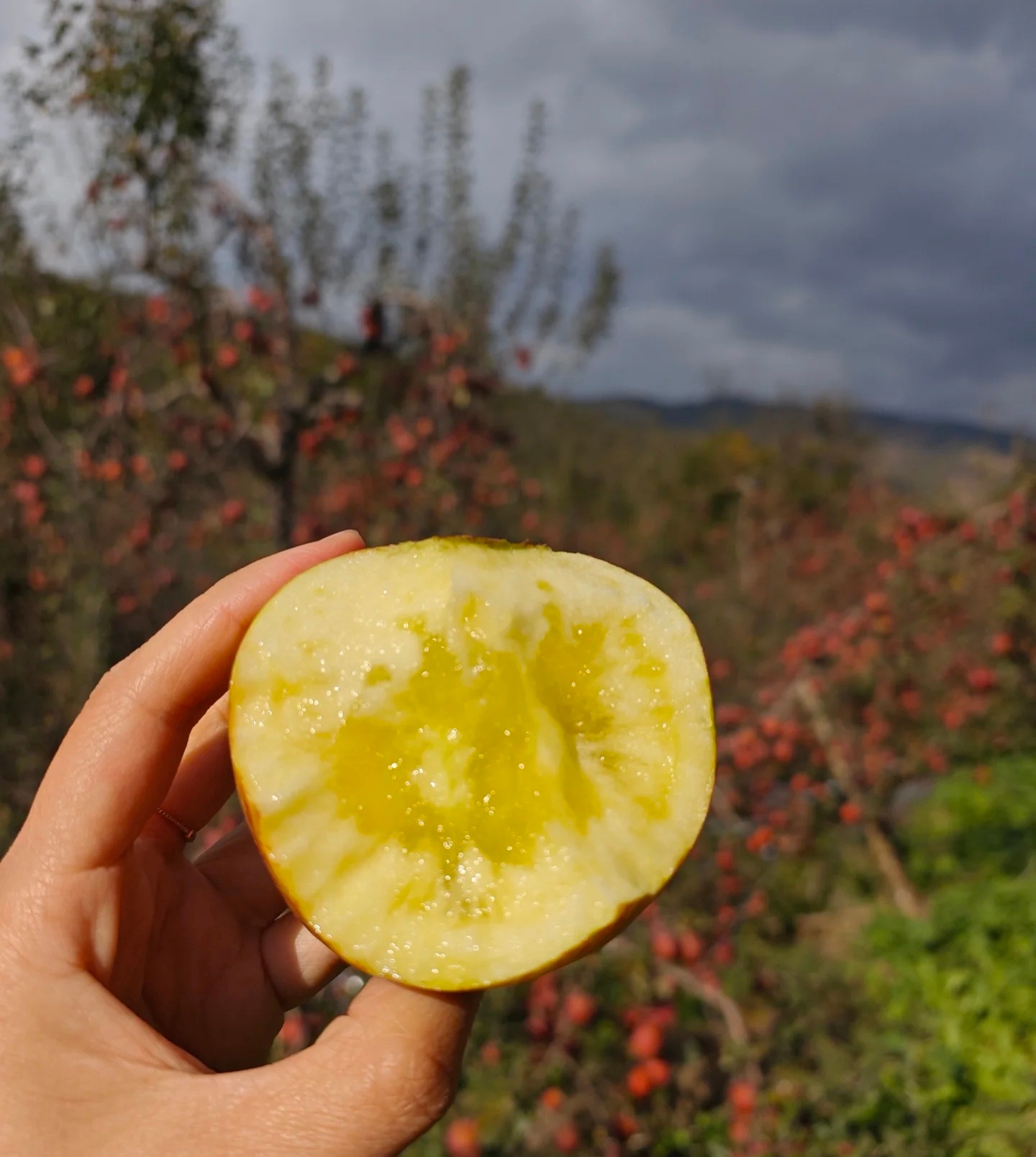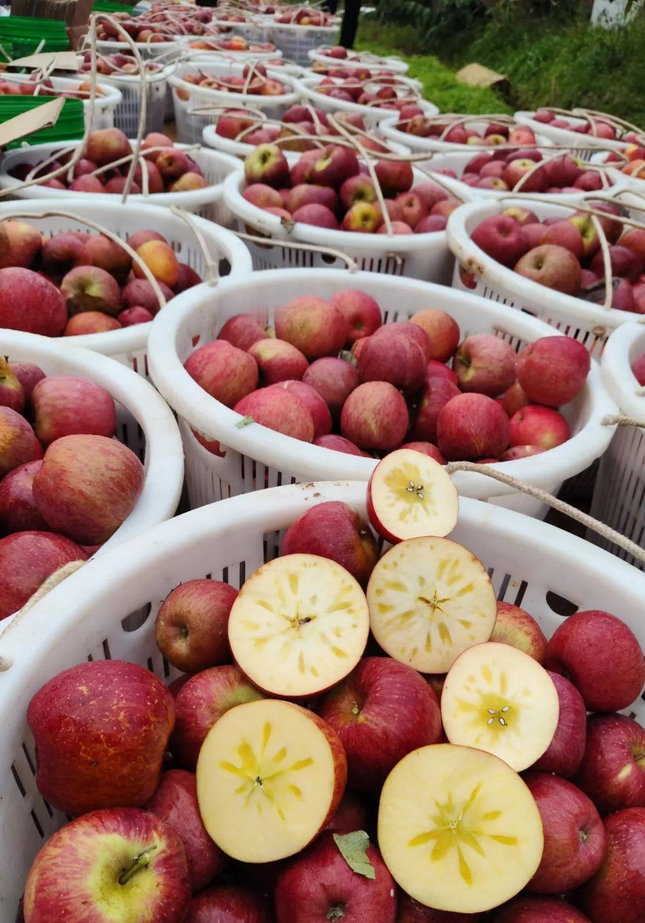 其实说实话,大凉山丑苹果也没那么丑啦,顶多就是没有红香妃和瑞香一类送礼的苹果长得那么红润和周正哈哈!但是无敌好吃!!从小大人就教育我挑苹果要挑那种皮皮赖赖歪瓜裂枣的,那种甜现在秒杀价格,32.9到手7斤,能有25-30个~~一次吃个够~大凉山丑苹果熟啦(糖心是温差导致糖分凝结的现象,多少都不影响果子本身口感哦)四川盐源丑苹果最好的核心产地货源年年都靠抢,这才是树上熟鲜果的味道,开箱就是扑面而来的苹果香!带皮直接啃,香!甜!脆!爽!纯甜,一口清甜嘎嘣脆!现在口感正巅峰~因为霜大,所以苹果更甜!初期那种果酸我反正是一点吃不出来了,但是风味十足,和纯甜的苹果还不太一样~吃多了也不腻~但是可能有小伙伴讲究口感不喜欢吃皮的,我建议也可以放上2-3天,甜度非常完美了,直接削皮吃,那叫一个上瘾!我真的家里两箱阿克苏,一箱红香妃都不吃了,库库炫老板这个丑苹果,不仅香甜嘎嘣脆,大小个头一个人吃也正好~我们的果子不套袋,不打蜡,360°无死角享受阳光雨露,自然生长所以丑,虽然外表有点“丑”!却越丑越甜!注意哈!糖心和水裂纹属于天然现象,不保证每个都有哈~鲜苹果的季节这个苹果真的独树一帜,离太阳最近,远离城市的高原苹果。粗糙红红的果皮,包裹着脆甜的果肉,超长的生长时间,不套袋自然上色,不催熟不打蜡,老人小孩放心带皮啃,又丑又好吃的实力派,果香浓郁汁水充盈,皮薄肉脆,酸甜可口,一咬爆汁~好看的皮囊千篇一律,好吃的苹果万里挑凉山盐源丑苹果。别看外表长得丑,里面却有一颗“爆炸甜心”赛过蜜糖甜,甜到心坎里,而且肉质酥脆,一口咬下,脆生生的,水灵灵的酸甜可口,核很小,果肉细腻无渣,直接带皮啃完全没问题,就是小时候吃的那种自然味道!!温馨提示:不是每颗苹果都有冰糖心,有些苹果冰糖心会多一些,有些会少一些,有些没有冰糖心,但不会影响口感。水裂纹是苹果自然生长形成,不保证每个苹果都有~苹果表皮部分没有那么红是因为在树上受太阳照射的角度不一样,这是正常现象,不影响食用哟!天热的地方收到可能糖心都不那么明显,但是丝毫不影响风味甜度哈!果子自然生长,图片均是在大自然果子生长的痕迹,外表有小戳伤、果疤、黑斑点等果肉未坏不影响口感,不在售后范围~~这个好物闭眼入