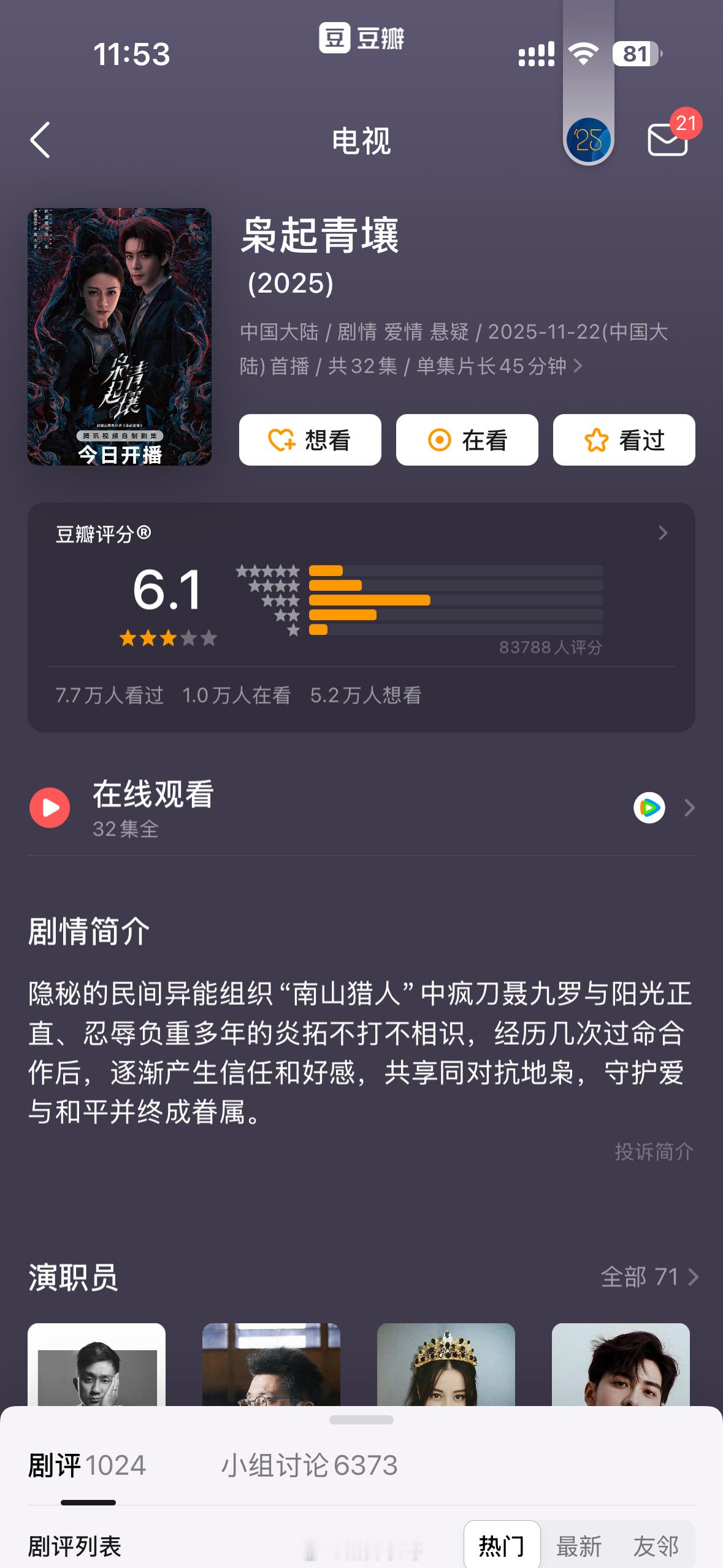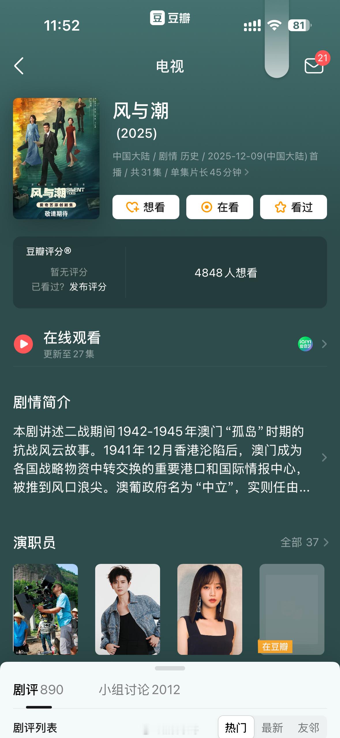 虞书欣的《双轨》豆瓣开分6.7分,是播完了开的之前陈妍希的《狙击蝴蝶》也是播完了开,6.8分迪丽热巴的《枭起青壤》也是一样,最后开了6.1分目前成毅的《长安二十四计》和任嘉伦的《风与潮》也都快播完了,也没有开按照快播完了都不开分必烂片的定律,也不会超过7分这个定律很简单,就像考试完了考得好,那老师还没有公布成绩,大家就都知道了。成绩差的,老师公布了成绩,家长可能好久都不知道,一样的道理。