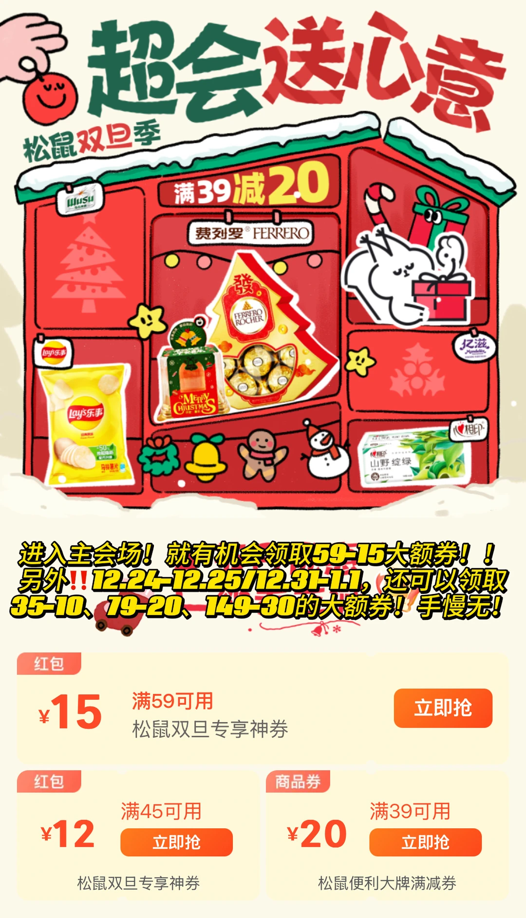 松鼠便利双旦季松鼠便利新年折扣享不停松鼠双旦季满35立减10元美团闪购双旦圣诞礼物巧克力