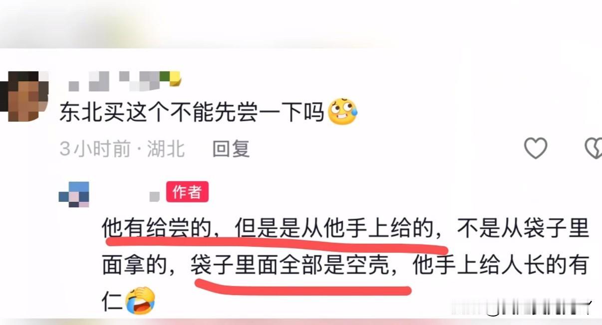 哈尔滨道里菜市场门口卖松子那男的,你小心了现在整个哈尔滨的人都在找你[捂脸]找你出来退钱 一南方女孩去哈尔滨旅游在道里市场见一个男人在卖松子女孩看他在冷风中吹的挺冷的就想着买一些,结果男的说这一大袋你都买了吧给100块钱就行,最后女孩给了120还以为占了便宜觉得哈尔滨人实在太好了120就能买这么大一袋松子,把这件事发到网上结果网友却提醒她上当了肯定全是空壳,女孩不信看着那么老实的人不会骗她,于是拿出来吃真的全是空壳[偷笑][偷笑]还有一些不是空壳的也是有苦味的 评论区也有网友现身说法自己被骗的套路都差不多,给尝的是手里的提前准备的好松子袋子里都是空壳 出去旅游真的不能贪小便宜啊,而且女孩还主动多付了他20,不知道他当时会不会觉得愧疚还是在心里蛐蛐南方人真傻