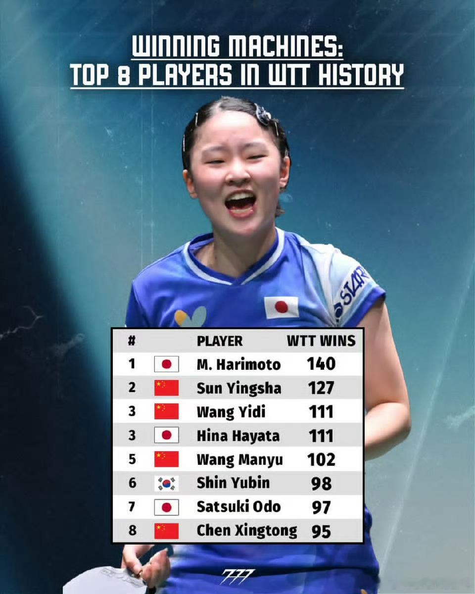 林诗栋一月3站打下来胜场数肯定能和张本拉开的美和太勤奋了 就没有她不去的wttwtt月球站她也会去的