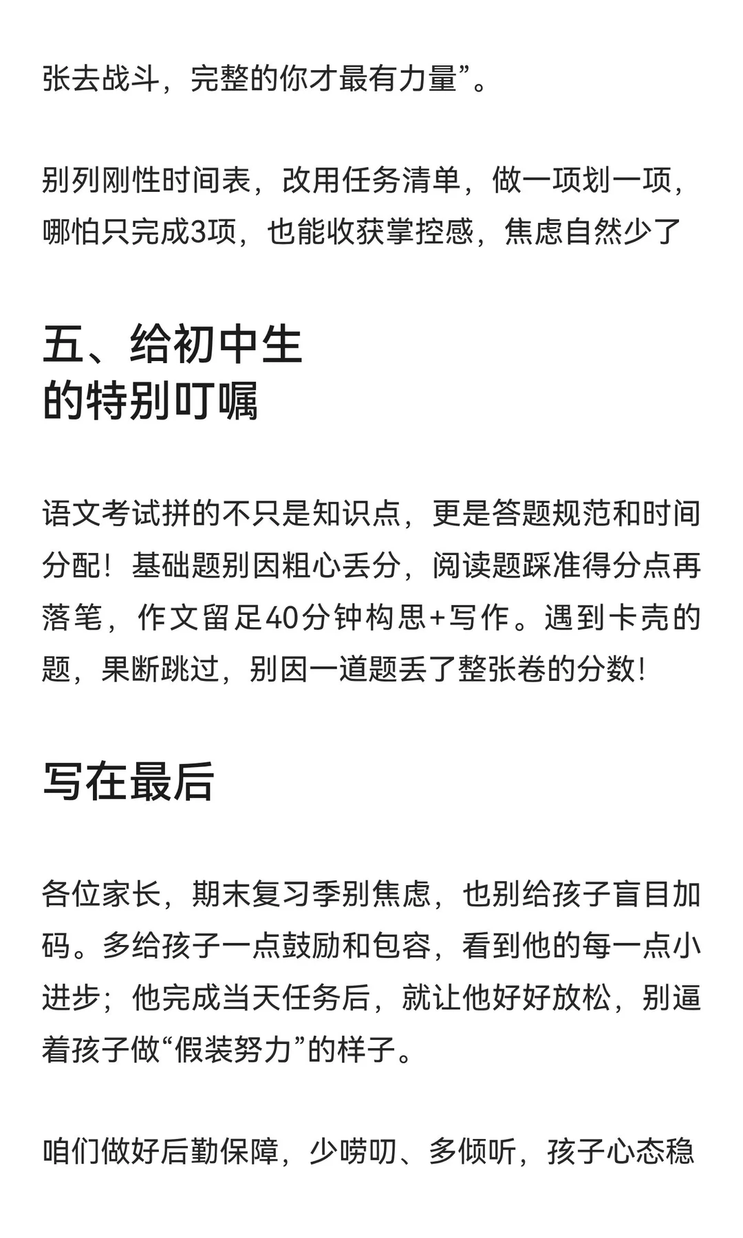 期末复习关键在于理清思路,避免盲目刷题。先列战略清单,聚焦高分板块,分两类复习:流程化项目按部就班,突破式项目集中攻克。注意解题动作,合理分配时间,保持良好心态。家长多鼓励,少唠叨,帮助孩子高效复习。