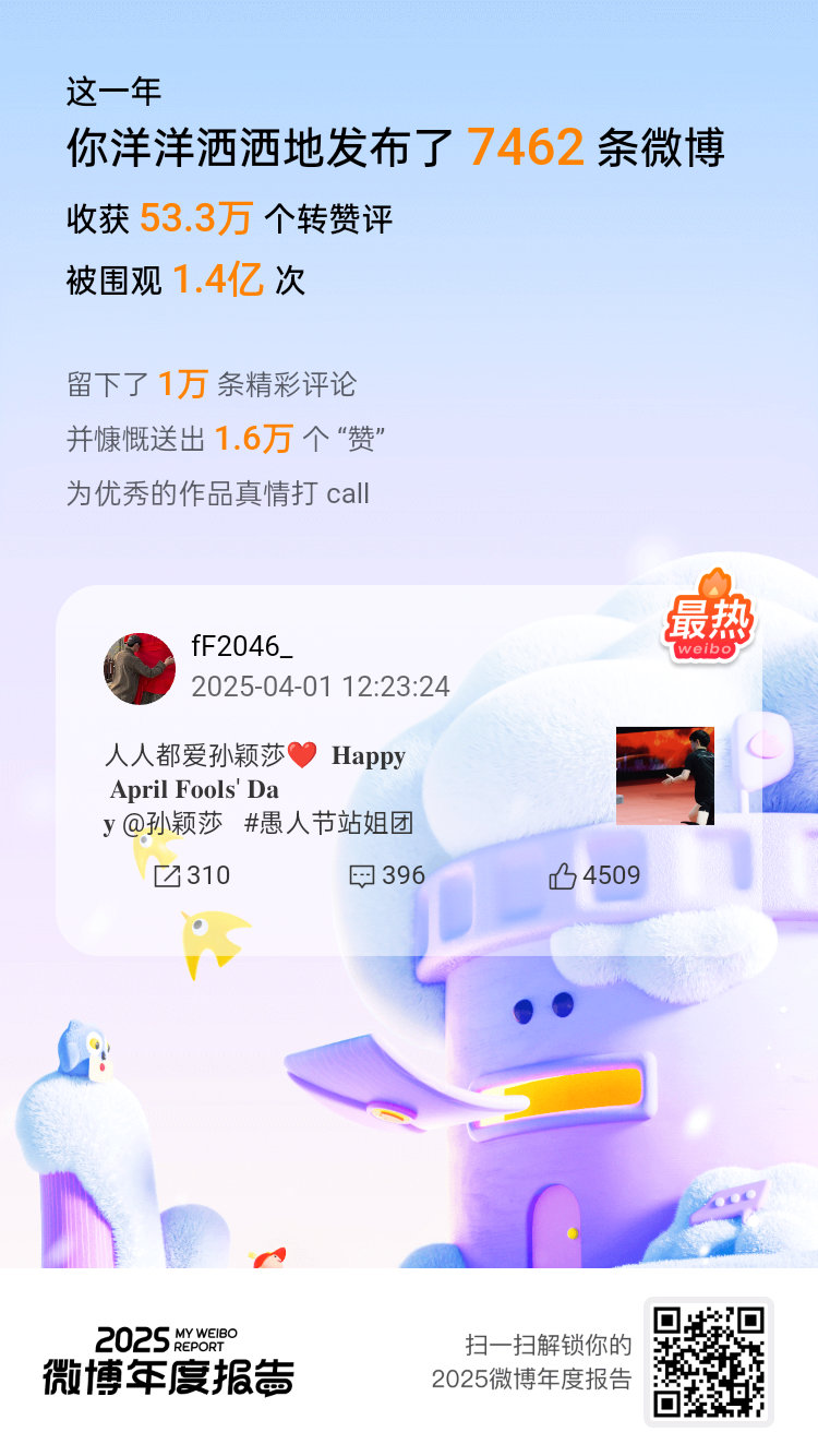 捷报喜报!2025我的V影响力力持续在线:金V成就闪耀339天,橙V成就点亮26天! 感谢家人们一路力挺!来看看你的年度总结吧~点击开启>>2025微博年度报告 微博年度报告微博之夜