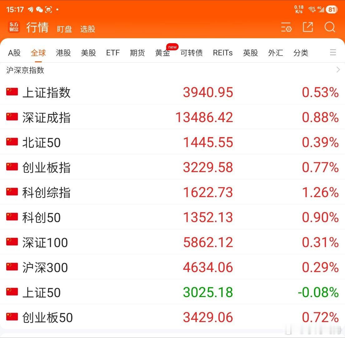 今天A股大盘沿袭了昨天上行的走势:东方财富App显示的10项指数除上证50微跌收绿外,其他9项指数皆上涨收红。个股走势比昨天好: 沪深京三交易所中,上涨的股票有4018支,比昨天多2559支,其中涨幅在7%以上的有158支,比昨天多59支; 持平的股票有169支, 比昨天多90支; 下跌的股票有1088支,比昨天少2653支,其中跌幅在7%以上的有14支,比昨天少36支。三个市场全天的成交量为18973亿元,比昨天小幅缩量242亿元。今天A股大盘整体走势上行,个股涨多跌少,连续几天收阳,后市或许会出现技术调整,但下行幅度有限,年未上涨行情可期