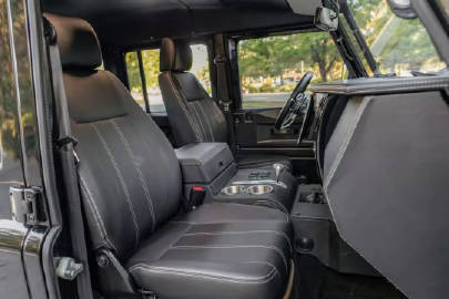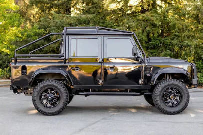 1993年的Defender 110 Pickup改装皮卡版本!6.2升V8自然吸气发动机扭力强劲,与之匹配的是6L80六速自动变速箱、双程分动箱、还有定制的传动轴和带锁的中央差速器!外观方面,采用了黑色车漆,加装了外部防滚架和侧踏板,大灯替换为LED光源;轮组采用了18英寸铝合金轮毂搭配33英寸Nitto Trail Grappler M/T轮胎。
