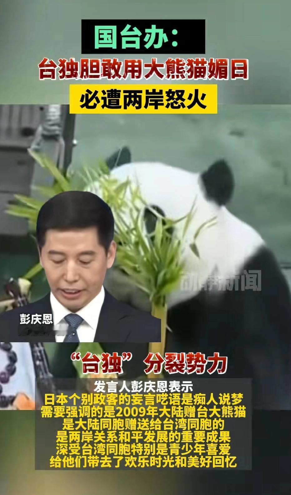 台独胆敢用大熊猫来媚日,必遭两岸怒火,台独要是跟日本交换大熊猫,真是丧心病狂到无