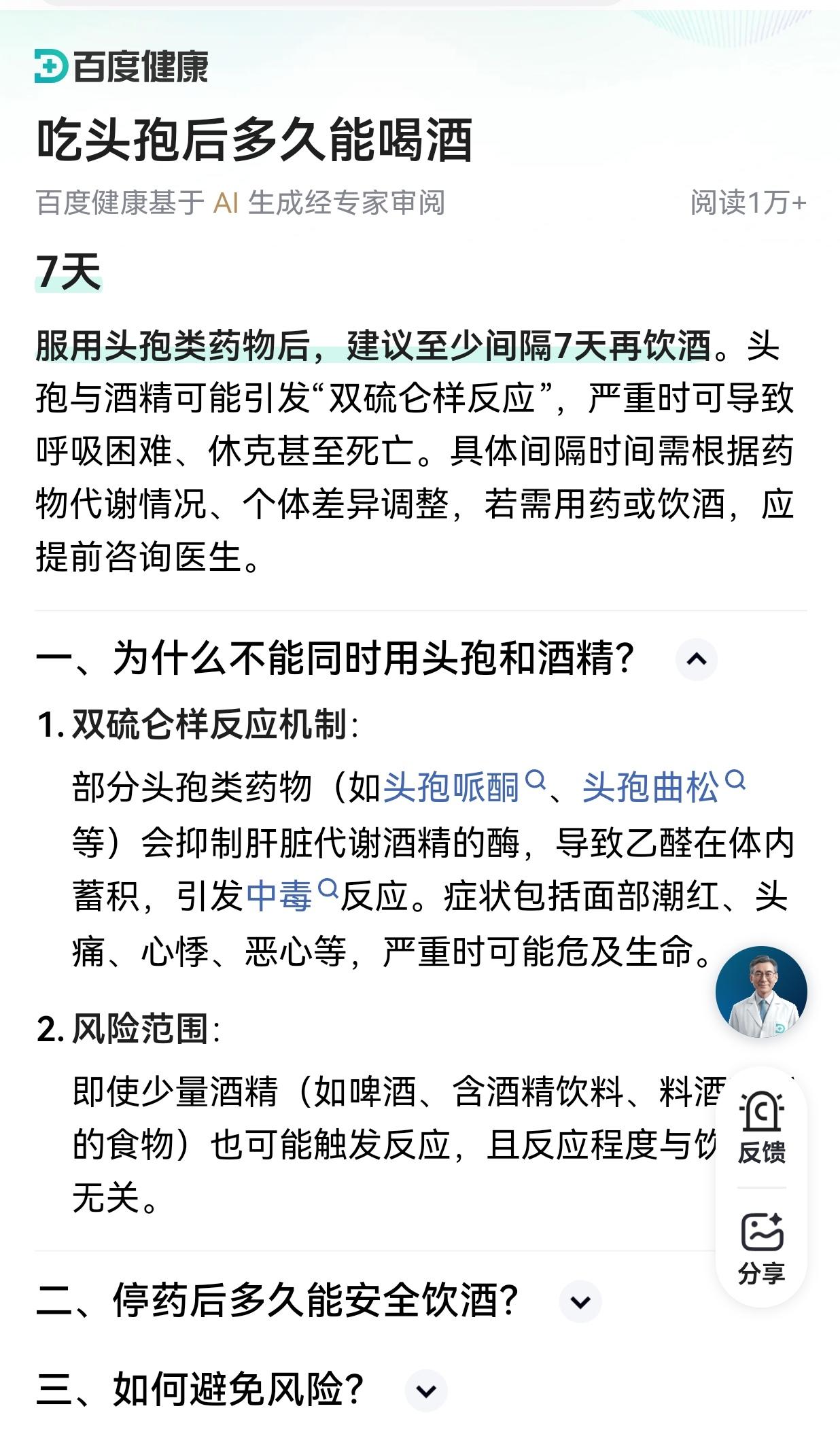 服用头孢和饮酒的安全风险: ——宁可信其有,不可信其无。