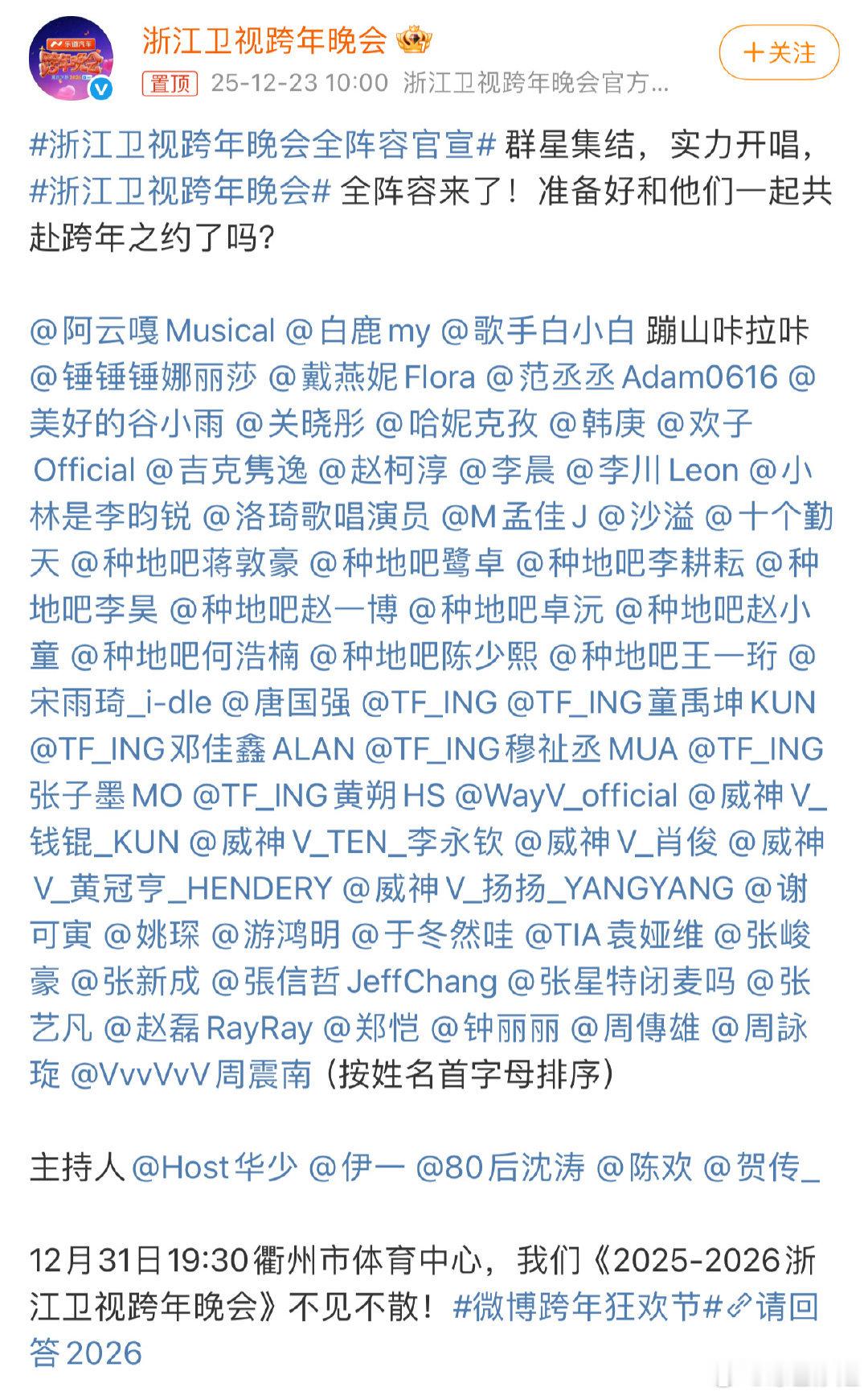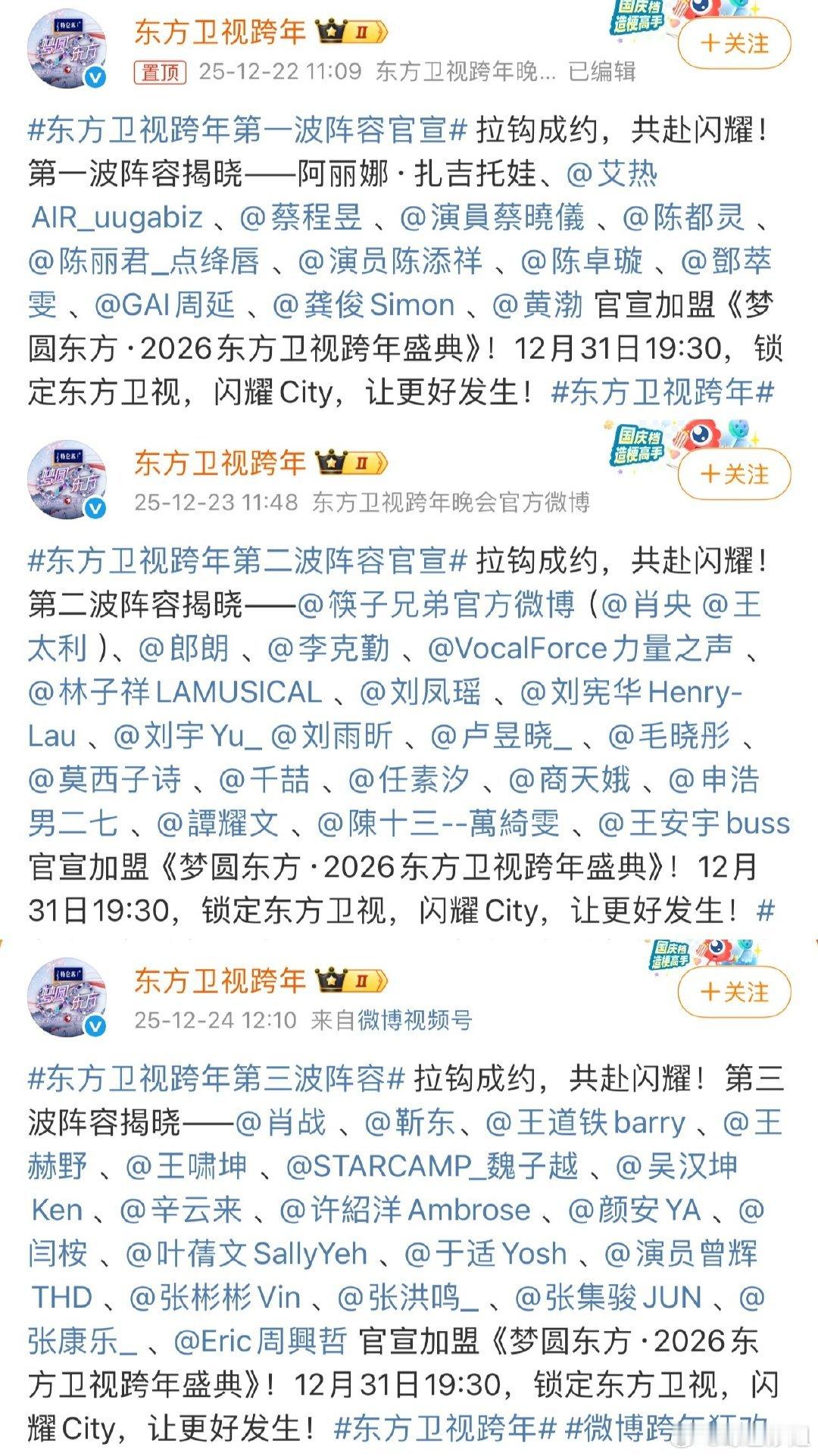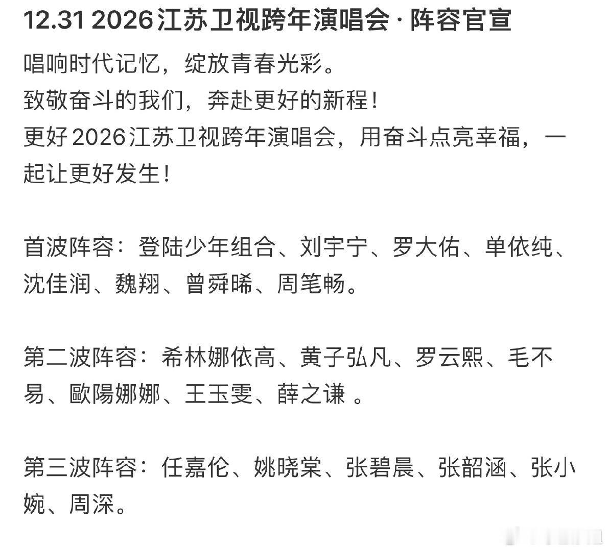 湖南、东方、浙江、江苏卫视跨年晚会全阵容🈶 准备看哪个台