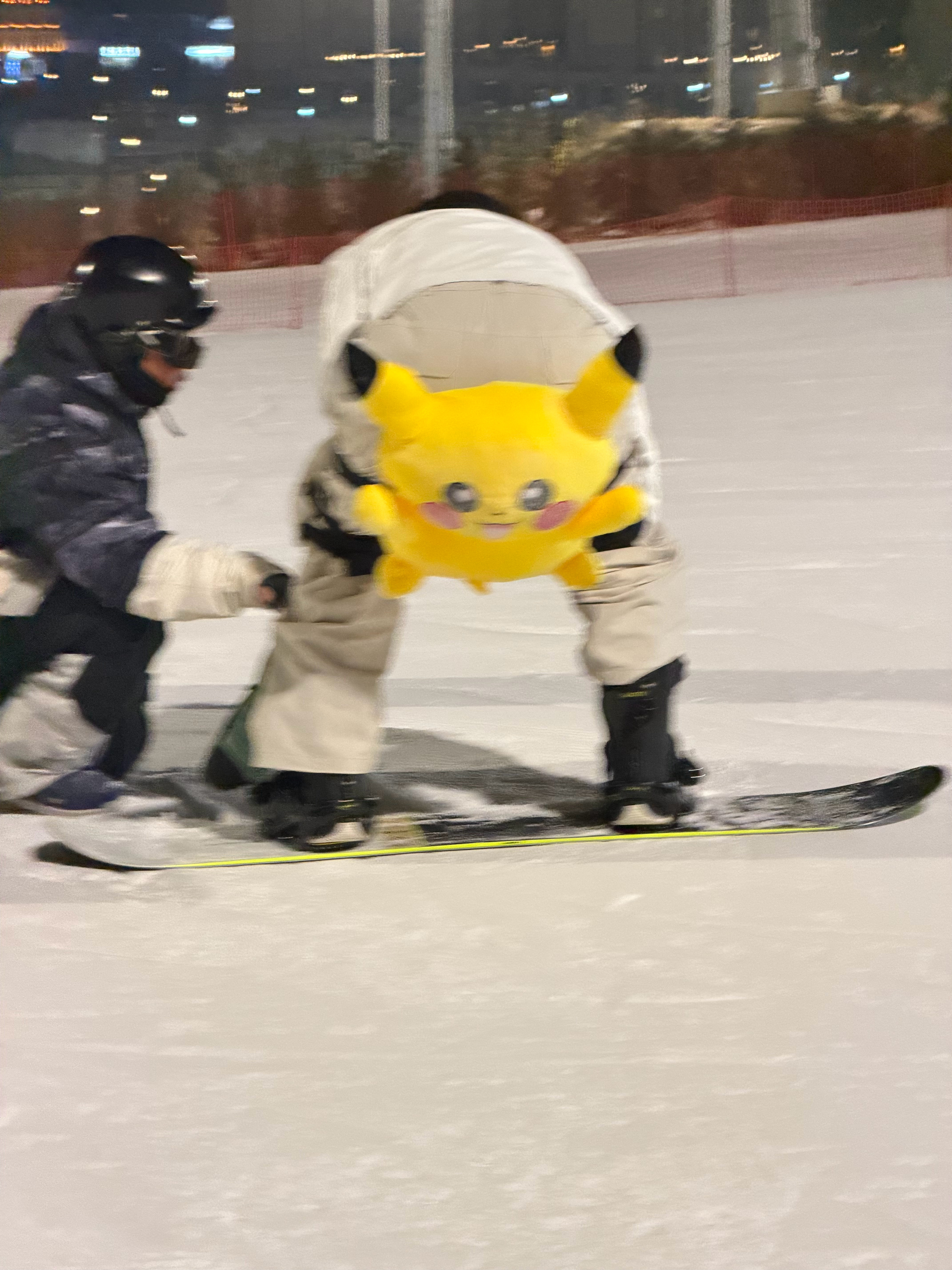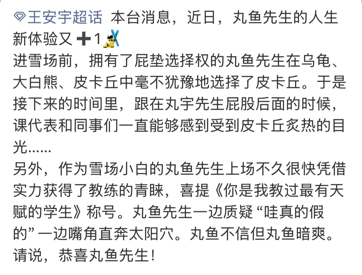 学滑雪的王安宇你萌!拥有屁垫选择权毫不犹豫选择了皮卡丘,被教练夸奖后一边说着真的
