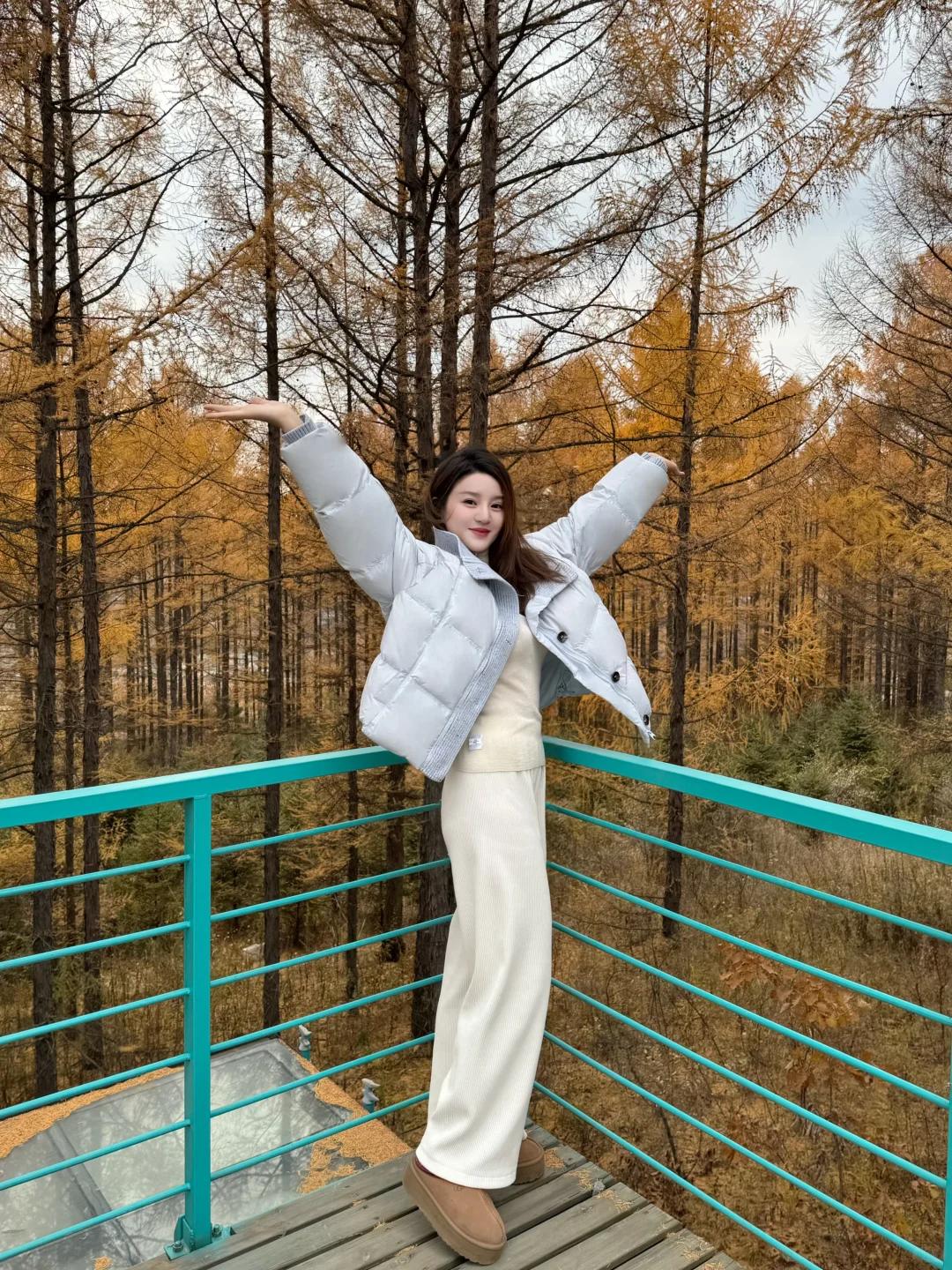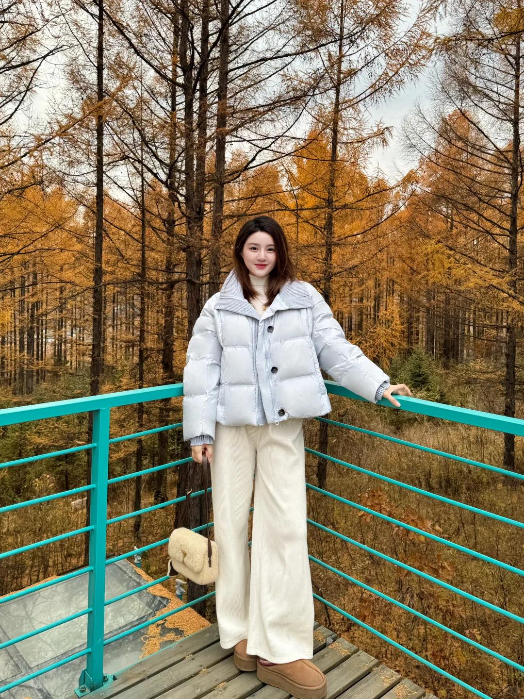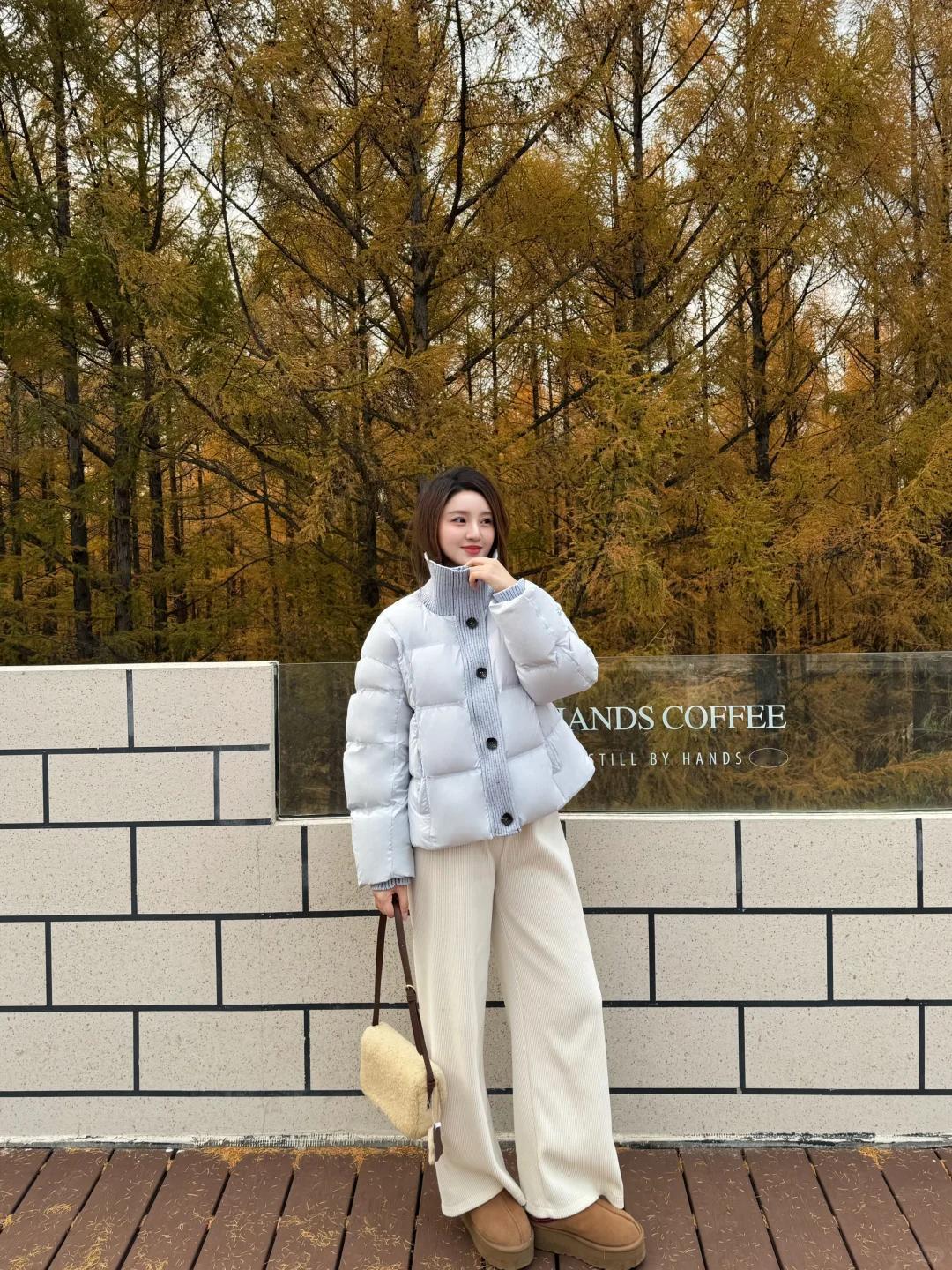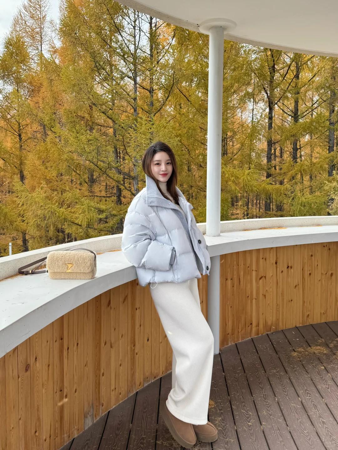 冬日想要穿出氛围感,这套搭配闭眼入! 浅蓝色羽绒服宛如冬日晴空,给人清新治愈之感,保暖力更是满分。 内搭白色高领针织衫,干净纯粹,与浅蓝碰撞出柔和的色彩层次,还呵护颈部温暖。 下半身米色针织阔腿裤,垂坠感十足,修饰腿型又显慵懒随性。整体简约而不失格调,高级氛围感直接拉满。 无论是漫步街头,还是与友相聚,都能让你在寒冬中散发独特魅力,轻松成为人群焦点。 ps:图片来源于博主木子甜崽