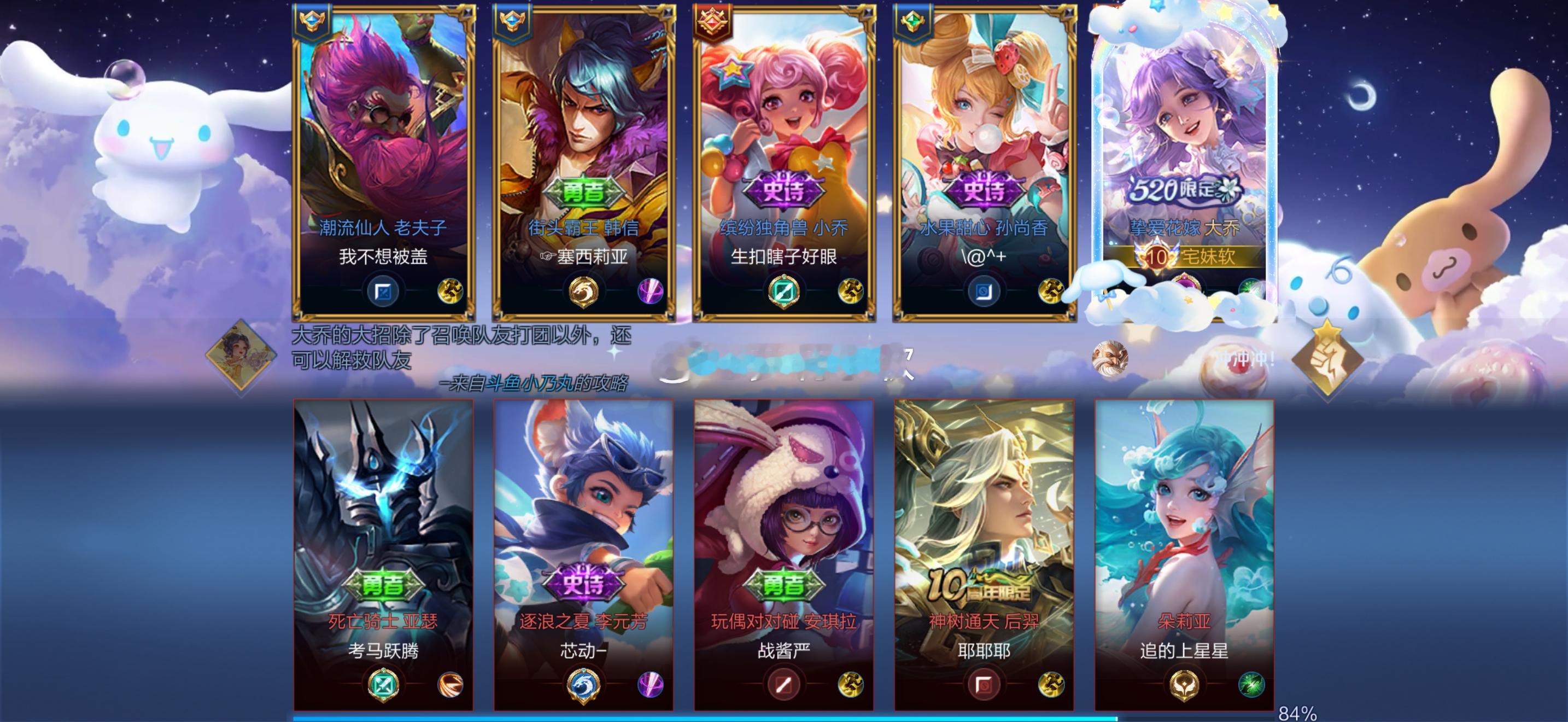 七八个月没玩了 回归买了一堆丑皮肤 女生就是玩是不会玩的 但是要有 艾琳皮肤还挺