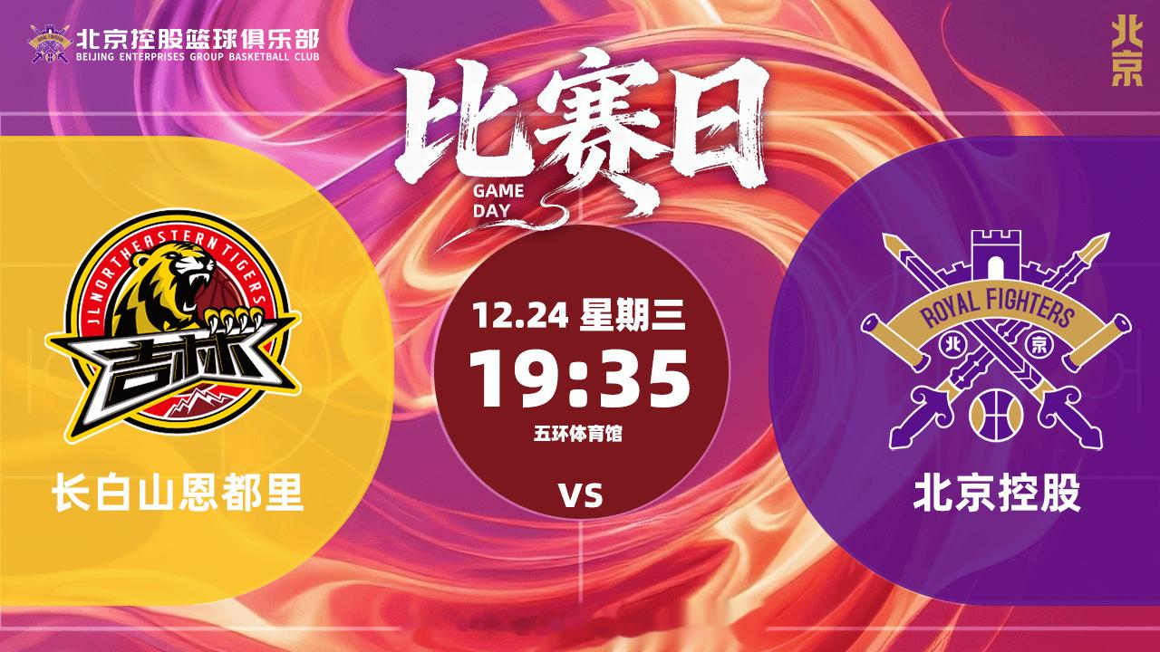 北控男篮社媒分享比赛预告:2025年12月24日19:35,北控男篮将对阵吉林男篮。