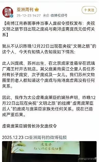 庞莱臣的后人庞叔令,又说出了真相,原来,刘芳菲主持的这档节目请来的这个叫庞戎的嘉宾,根本就不是庞莱臣的后人,现在真是太有意思了,为了沾上庞家的光,各色人等无所不用其极,一个个粉墨登场,都想占点便宜,捞点好处,这个圈子有点乱!
