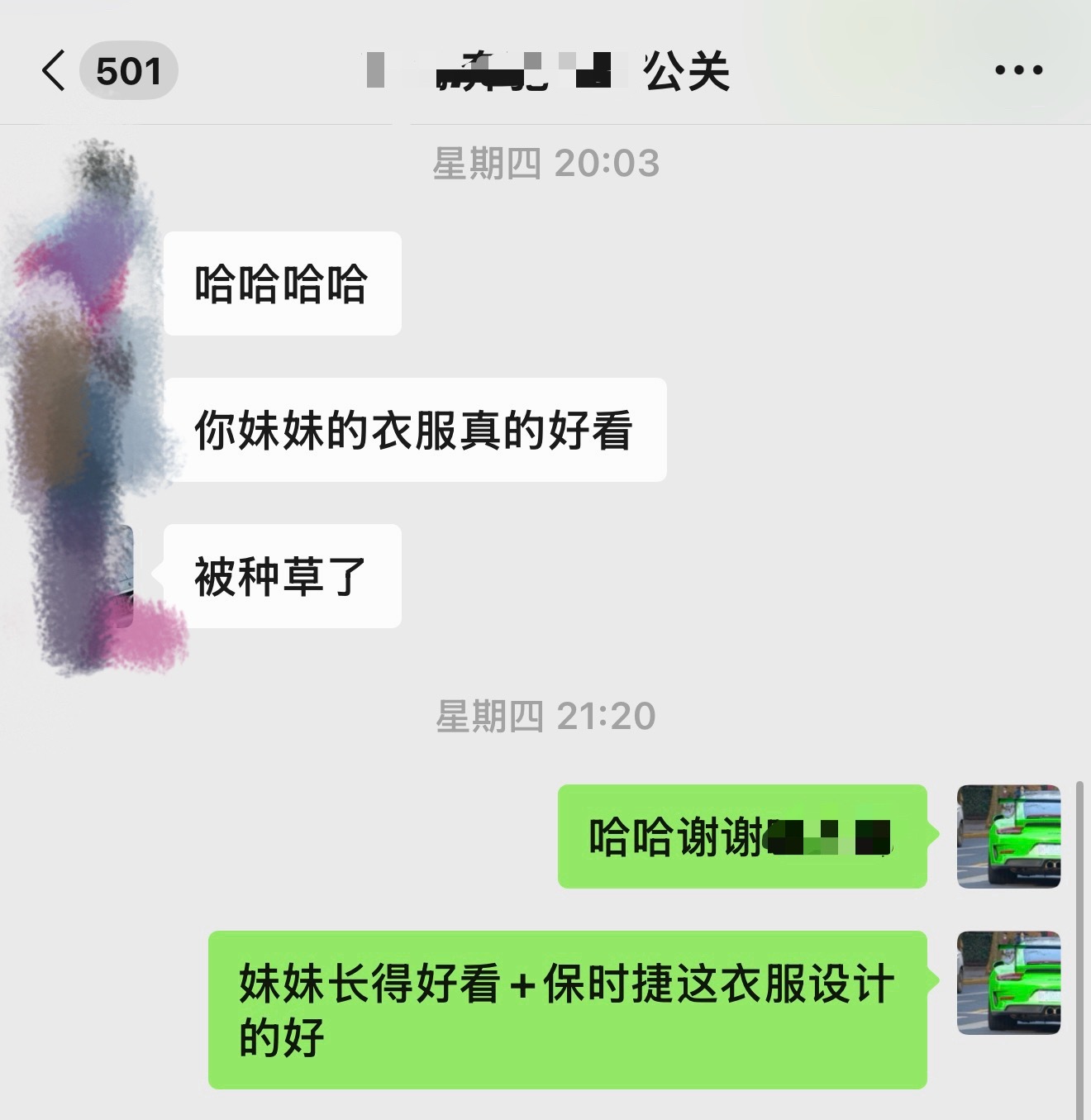 妹妹还是太全能了给保时捷带货毛衣。不管光粉丝来问链接,连BBA的公关也来找我了。