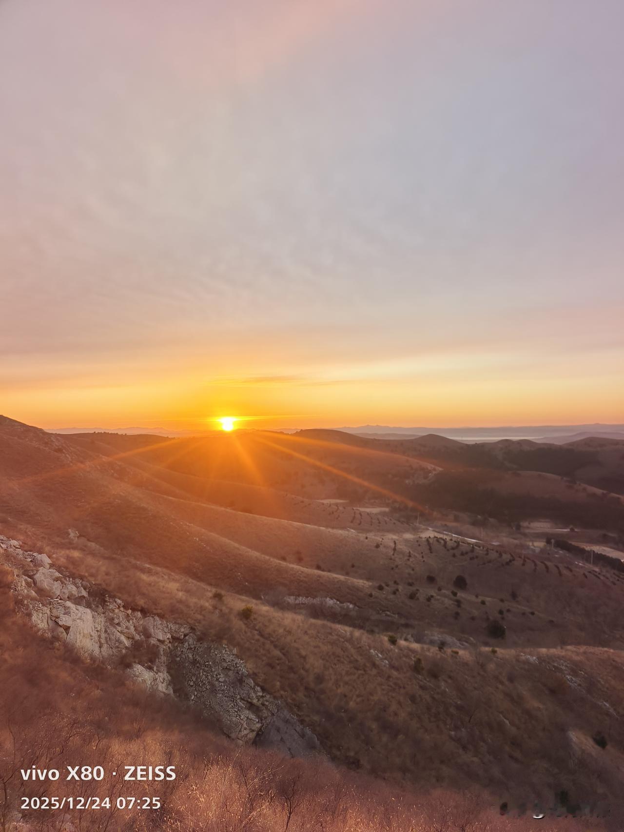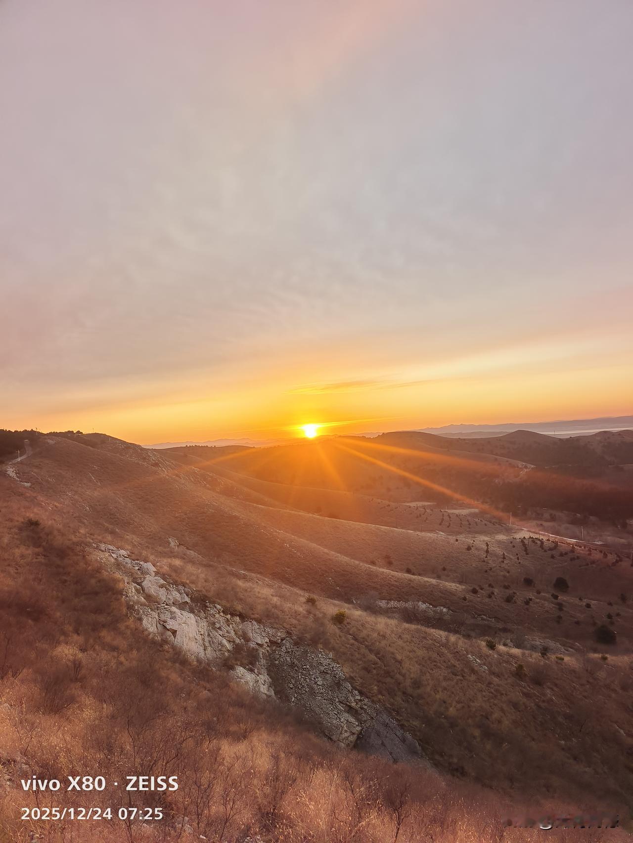 旭日东升,金光灿烂,北方冬天的天空,给人留下了无限的遐想,非常喜欢这样的美景,看到这样的美景之后,一天的心情都是非常快乐的,就像太阳一样,火热而温暖!